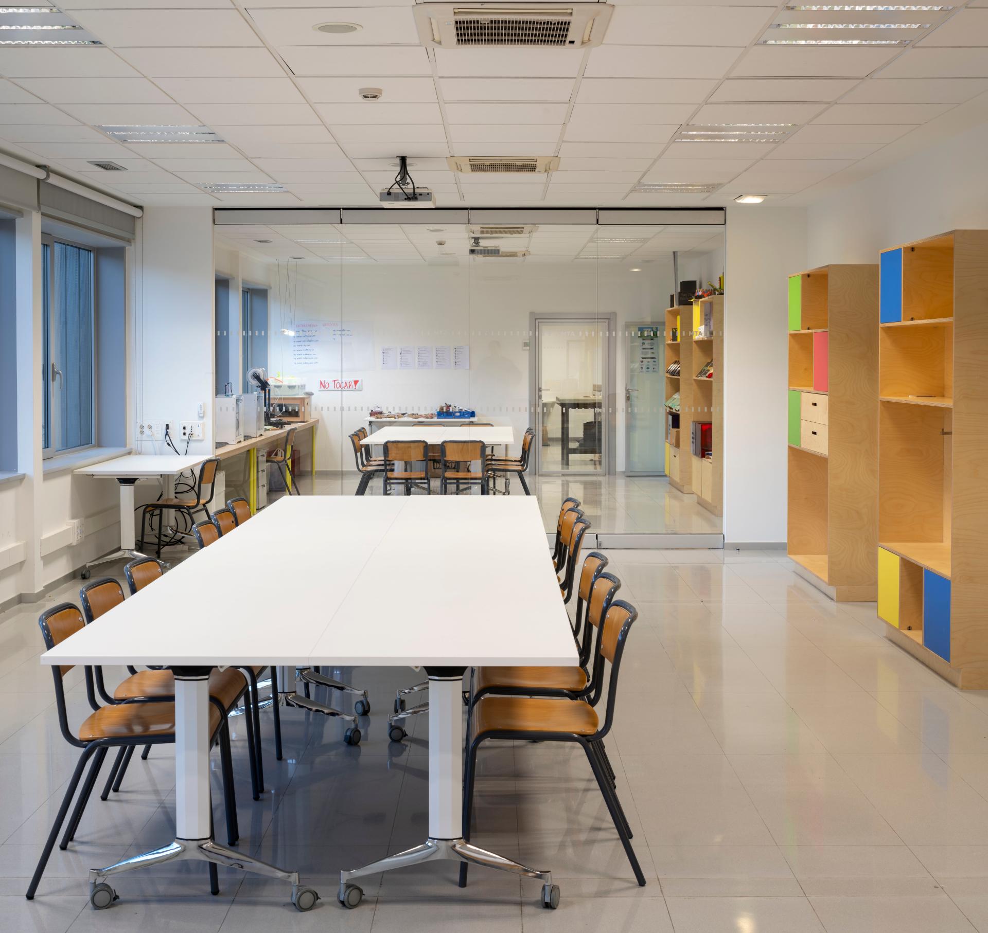 4) Transformation of the traditional classroom arrangement. The classic rectangular classroom with desks facing the teacher is a model that responded to the needs derived from the Industrial Revolution. Nowadays learning spaces need to have the ability to contribute to the learning experience and be aligned with the new pedagogical models responding to their functional needs and providing the spatial experience required by each model.