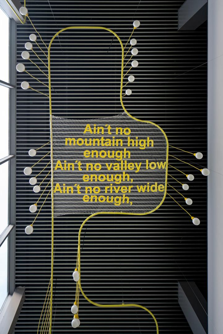 -Spatial storytelling. Understanding the space through a story that its users can take ownership of is key to generating the feeling of belonging. In this case, we define a student's journey through the weaving networks that navigate through the building, personalizing themselves with musical verses as they enter the LEINN space.