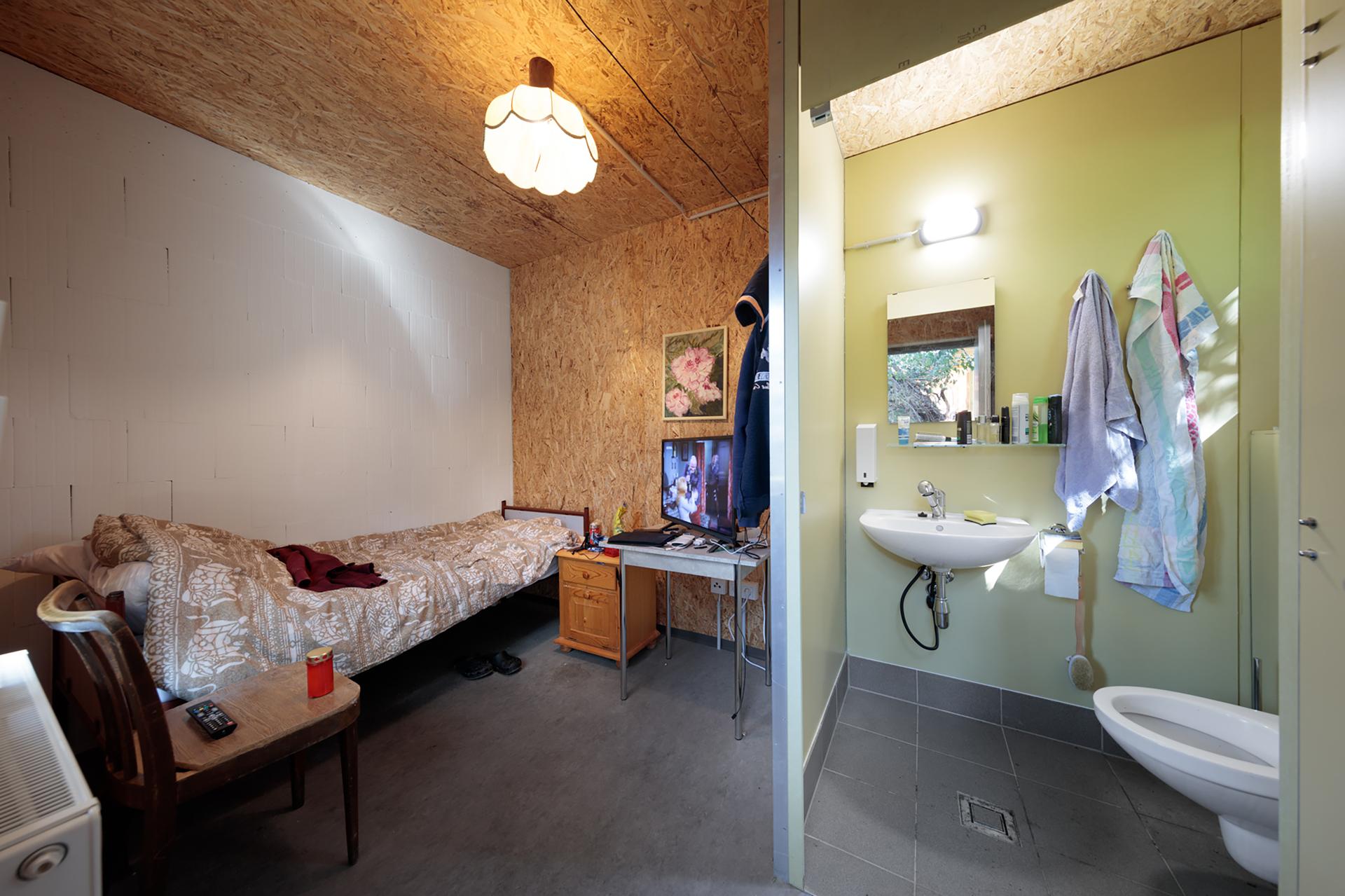 People who cannot withdraw, withdraw into themselves. Therefore, it is important to also give homeless people this minimal possibility to retreat in order to be able to participate in social life again as a result. Small retreat spaces require compensation through large common areas or outdoor spaces. Both are provided here in the form of a large community garden and a guesthouse. Only when the residents can be sure that they will not be evicted and have come to trust the volunteers they do participate in community life again.