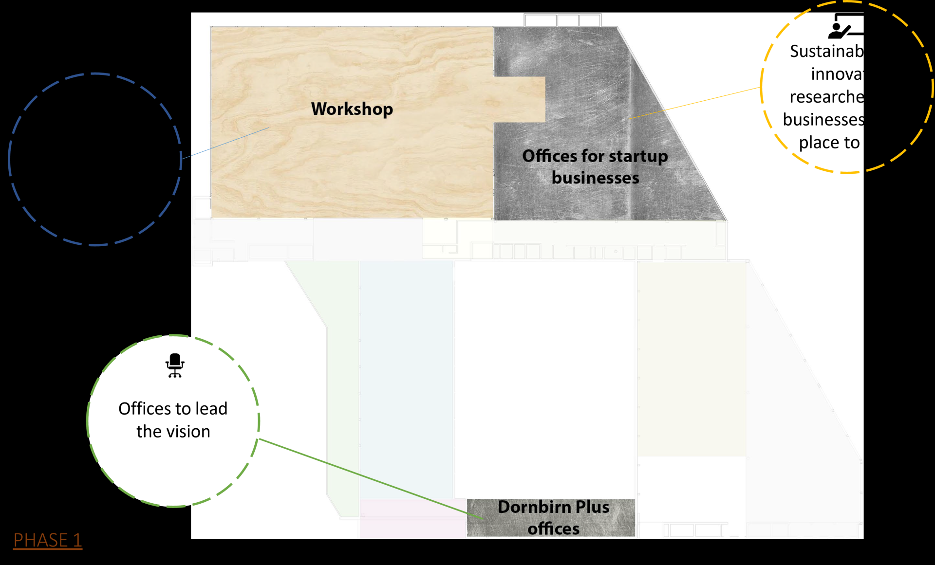 An existing campus in Dornbirn, Austria is transformed from a monotonous asphalt area, into a diverse program for all user groups. Existing users, which is mostly students, are invited to contribute in creating new public areas from upcycled materials. An industrial building on the campus will be repurposed as the New European Bauhaus. Focusing on creative spaces, learning by doing, and learning with play for students and children, we are proposing one of the solutions for a sustainable future.