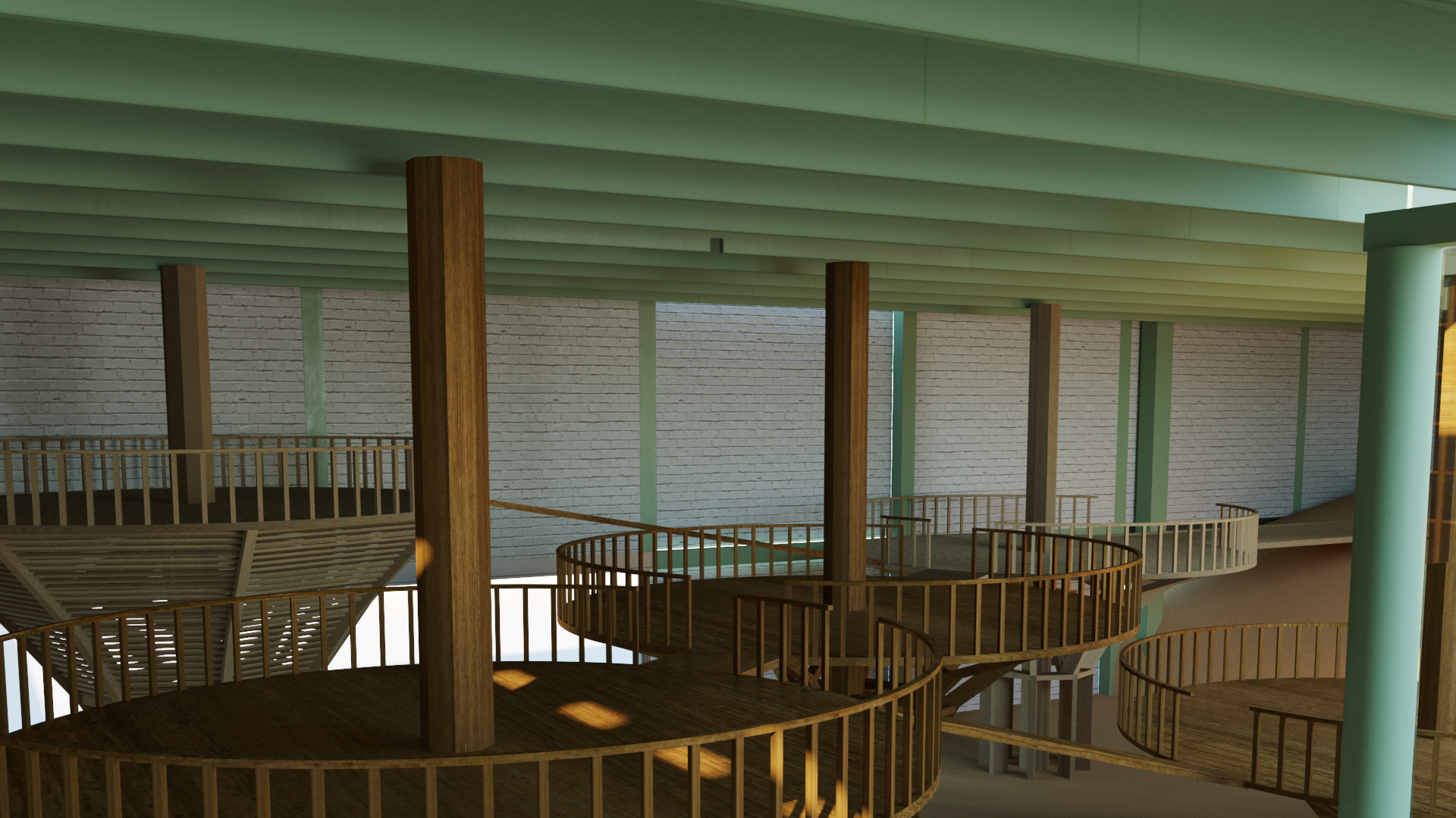 The concept, created by three Architecture students, sets out to literally create the New European Bauhaus. By repurposing an existing industrial building in Dornbirn, Austria, we believe the European (present and future) culture can best be represented. Under the teachings of Hon. Prof. UNESCO Anna Heringer and Dr. Clarissa Rhomberg, we are developing a school out of the ordinary. The (approximately) 300 students will take part in creating the learning environment from the craft hall, while dealing with the new vision for construction: natural materials. The atmosphere will Combine Earthen architecture with the wooden craftsmanship represented in the region of Vorarlberg. The atelier is intertwined with and exhibition space, where the connection between art and science that architects juggle is elevated. The building also integrates local sustainable businesses and researchers to create a line of communication and development. The new European Bauhaus curriculum will also be integrated in a youth and children's program, where part of the building is a learning landscape focused on learning by playing. These user groups and their needs are reflected in the surrounding landscape, thereby creating natural spaces for dialogue.