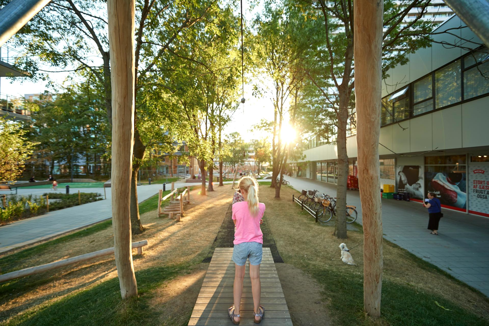 This has been realized by establishing areas where people of all functional levels can engage in movement, physical activity, and sensory experiences on the level they are comfortable with thus promoting a sense of inclusion and equality for the residents. While also providing new access points through the district for cyclists and pedestrians, connecting it to the surrounding community.