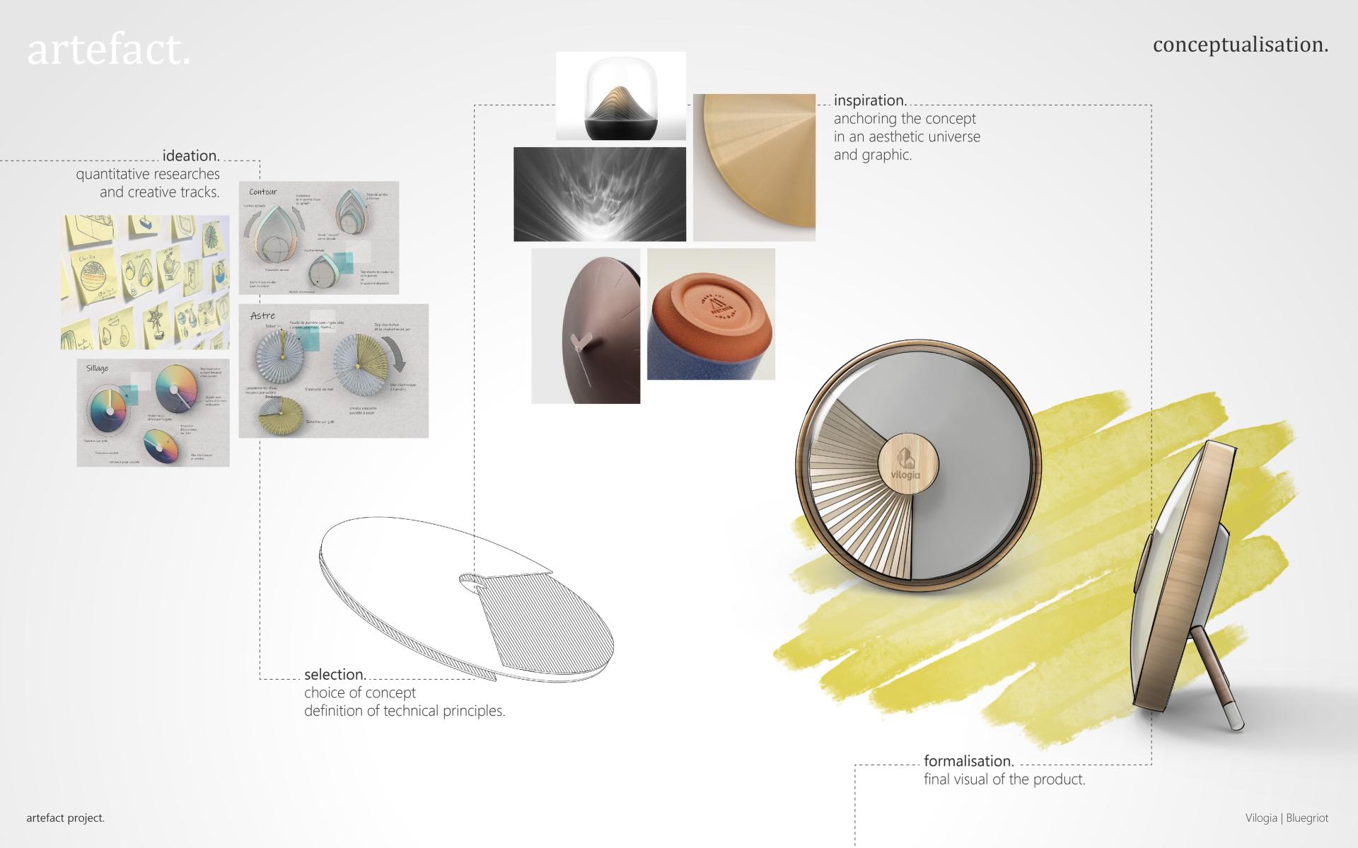 How to make the invisible visible and attractive? The production of renewable energy in homes often goes unnoticed. Vilogia worked with the design firm BlueGriot to develop a beautiful and sensitive connected object that allows the inhabitants of a home to visualize their solar hot water production. Thus, tenants know that their building is environmentally friendly and when during the day they can use solar hot water or contact their landlord if the installation does not work.