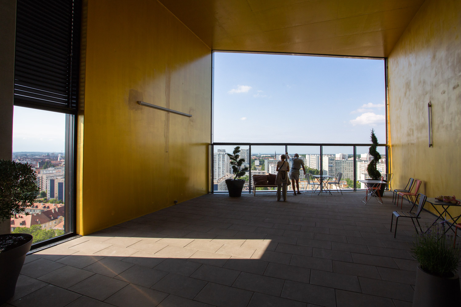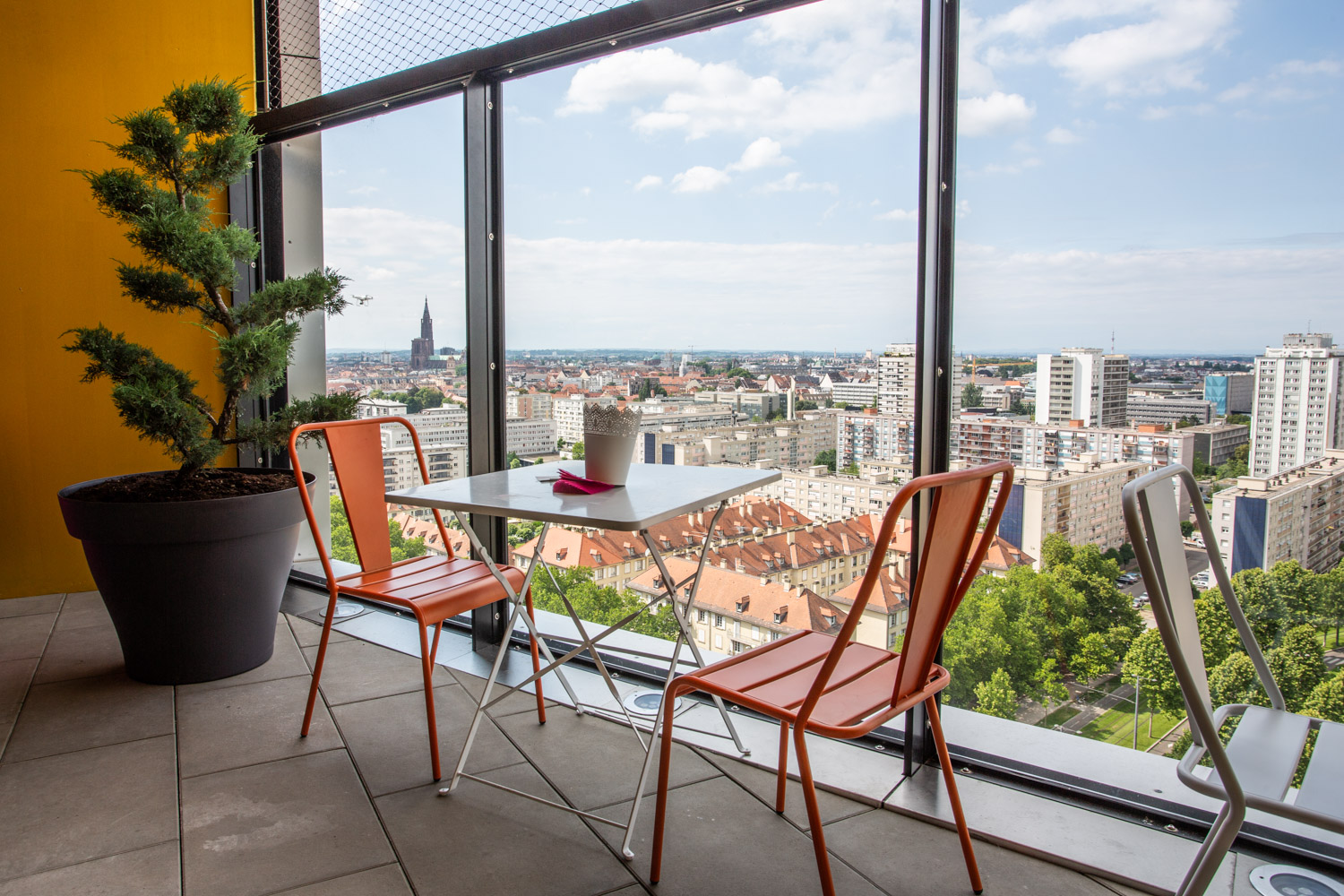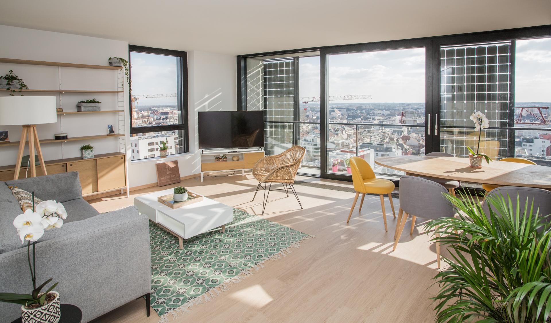 At the top floor, the tower’s ‘social heart’, the residents can enjoy moments of togetherness during organized activities such as movie screenings and game nights. This “social heart” also offers an eye-catching semaphore from where you can gaze at the river, the cathedral of Strasbourg or the mountains.