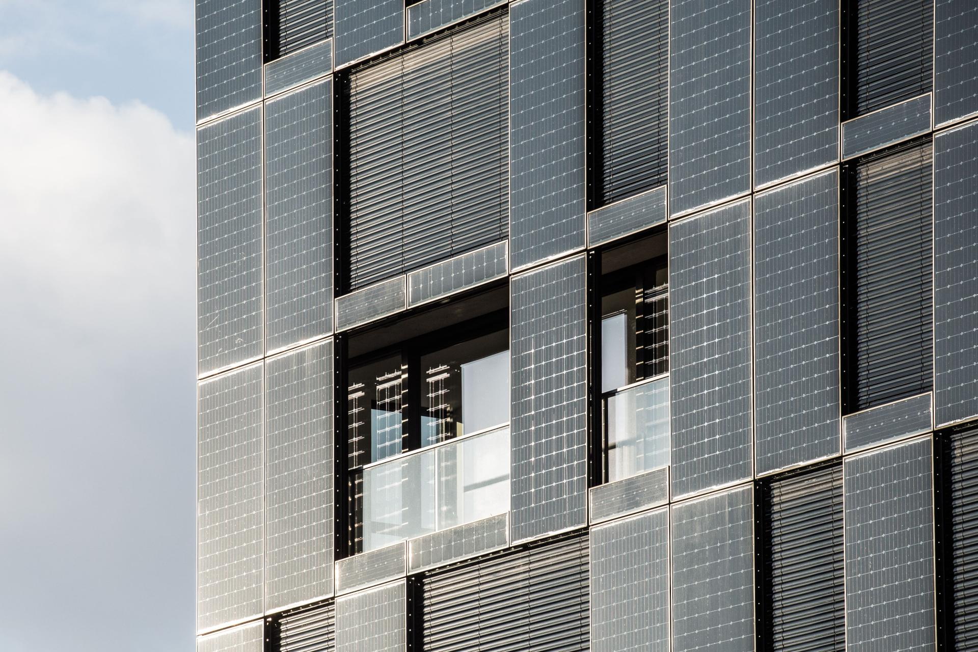 The beautiful tower produces more energy than its residents consume and the building needs, the (BI)PV energy is sold to the public grid and the profits are distributes to the tenants. The result: affordable rents and electricity & heating bills near zero.
