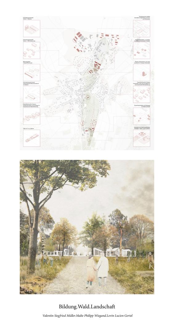 The projects Bildung.Wald.Landschaft, Holzbau-Handwerk-Stärken, HolzBauFeld and Selbstbauzentrum developed within the design studio Gehren-Forest.Land.Future, intend to showcase possible ways to use the potentials of the rural landscape to create an impetus for a discussion on sustainable development trajectories for the town Gehren, located in the Thuringian Forest. They are examples for a way of working that develops landscape-based potentials and uses these as a base for sustainable regrowth.