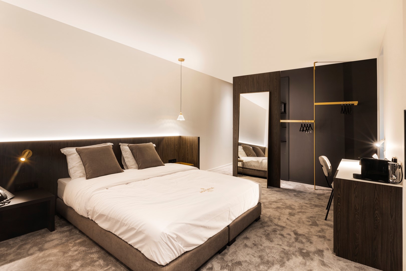 It all started when Colin Dearman and Klaas Van Laeren saw an opportunity when they saw a beautiful Belle Epoque building across the street whilst having a bite to eat in the Leopoldlaan in De Haan. Hotel Astoria was looking for a buyer and they were interested. The biggest challenge to tackle? Time, because they wanted the hotel to open its doors by next summer. How did the luxury hotel undergo such an impressive transformation in such a short time? With the help of Clicwall, an easy-to-install, high-quality melamine-faced wallcovering system.