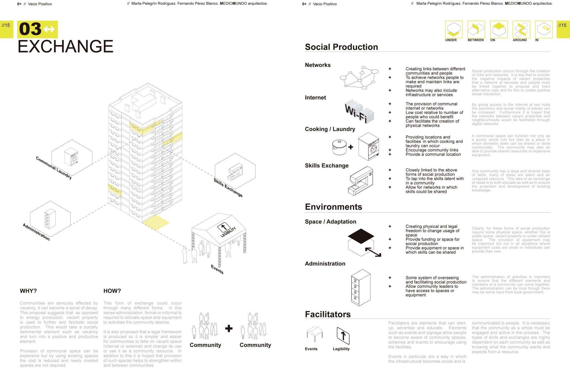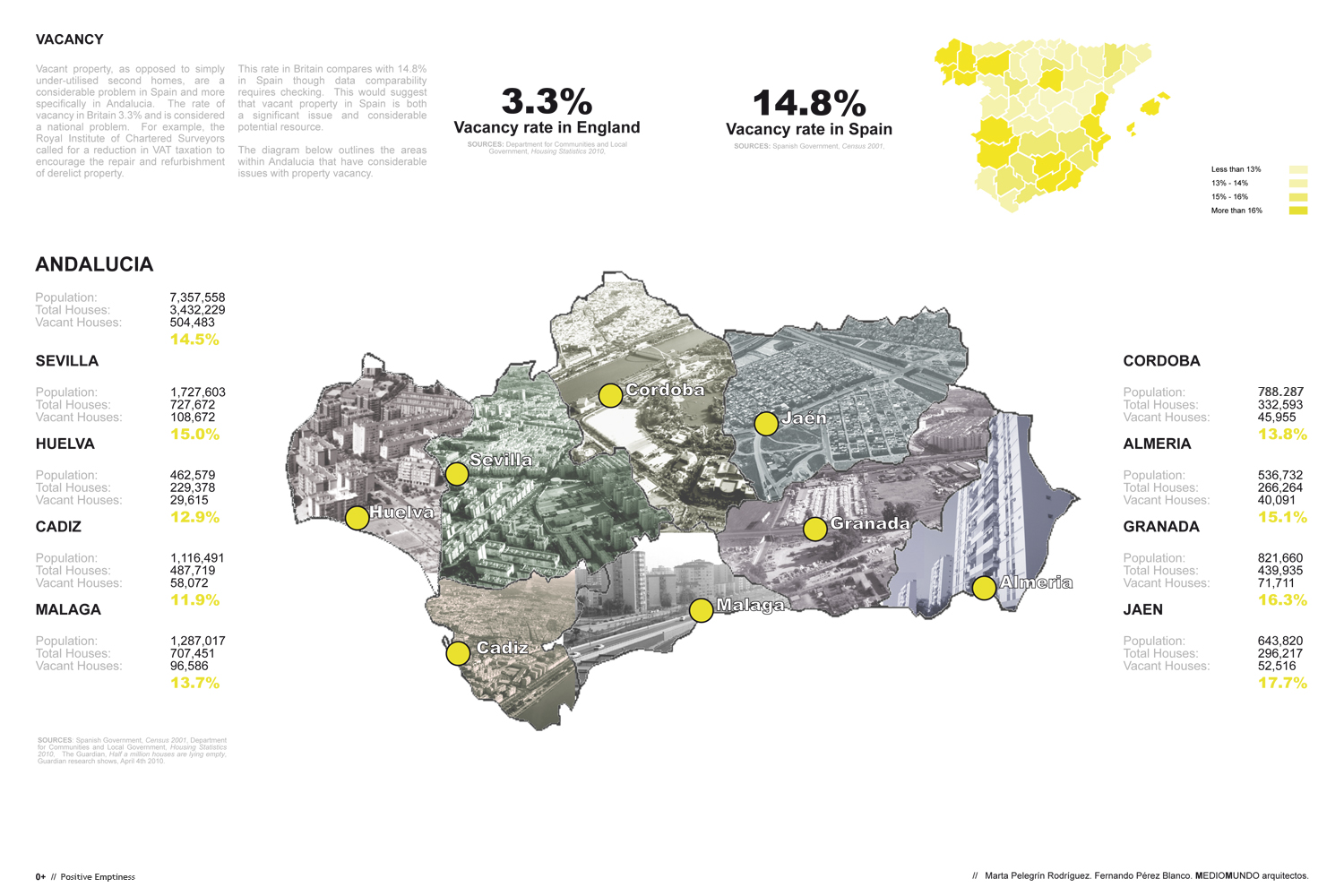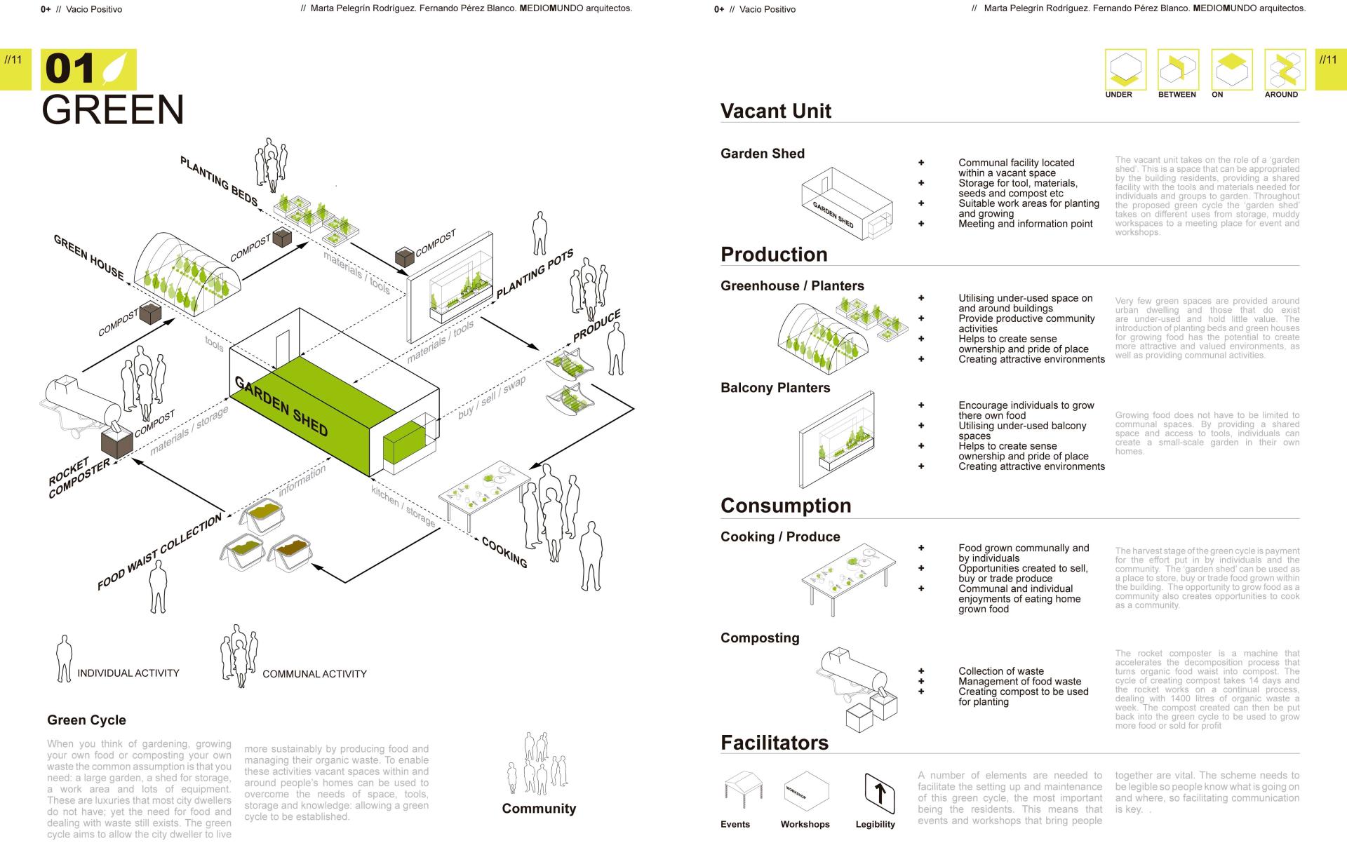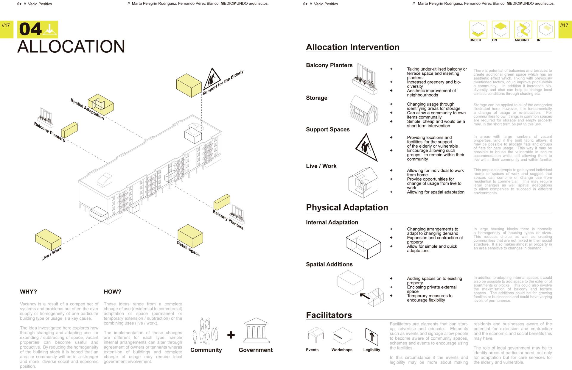 Spain has a higher percentage of empty housing than any other country in the EU. It’s needed to reflect on and work with these ‘empty spaces’. This positive emptiness (0+) is not simply a symptom of exclusion, poor quality construction or speculation. We assigned it a positive potentially to be incorporated into the current system of residential, environmental, energetic and infrastructural resources with in the neighbourhoods to which they belong. We also propose a cooperative and participative management of the empty housing, convinced that they could fulfil the requirements of the local population either temporarily or permanently. Alongside the identification of spaces as positive emptiness, the objective is to put in place a process that can function alongside existing ways of occupancy as well as generate a stimulating urban environment able to compliment and connect housing to its urban context.
