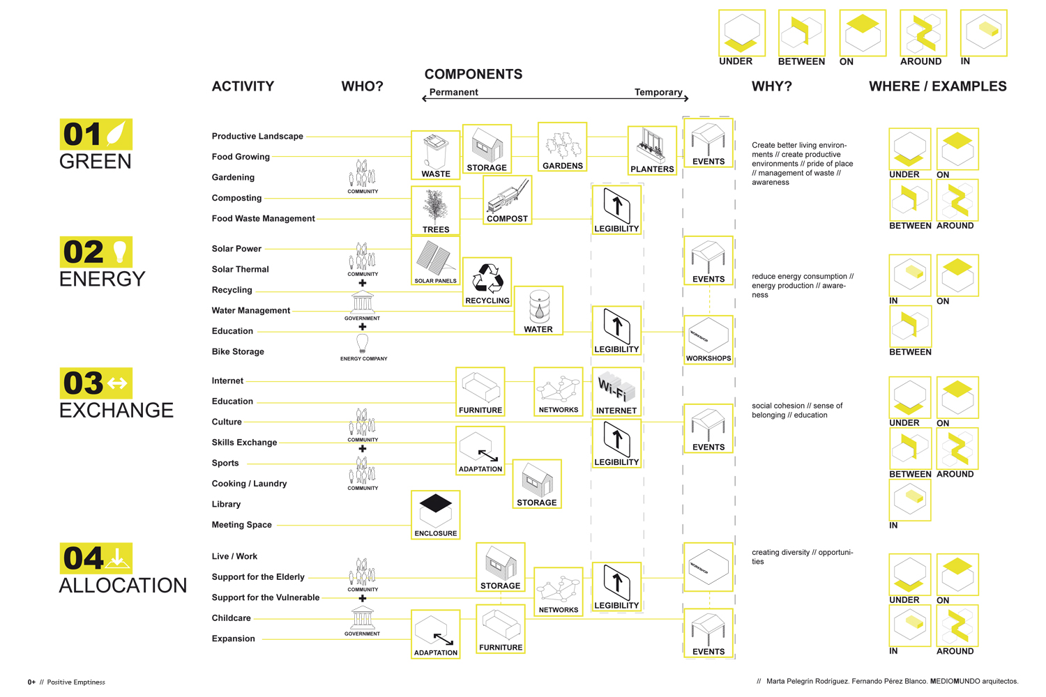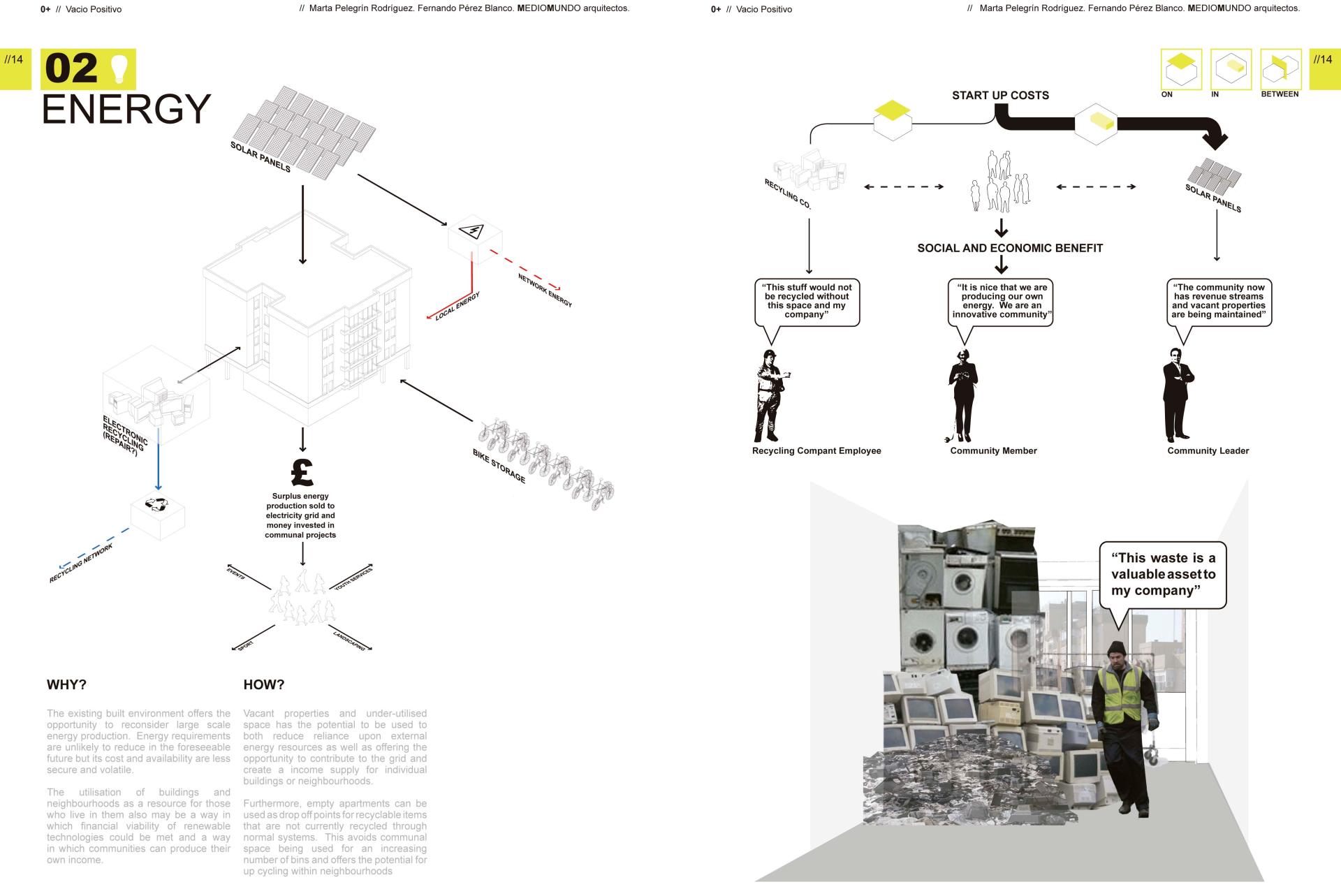 We proposed a comprehensive and participative management of the empty housing, which we term positive emptiness (0+), to be incorporated into the current system of residential, environmental, energetic and infrastructural resources with in the neighbourhoods to which they form a part. In this way they could hopefully fulfil the requirements of the local population either temporarily or permanently. The aim is to think of new formulas for utilizing the latent disparate constellation of built spaces in order that they be distributed throughout the different neighbourhoods to which they pertain in an integrated, connected and qualified manner.
