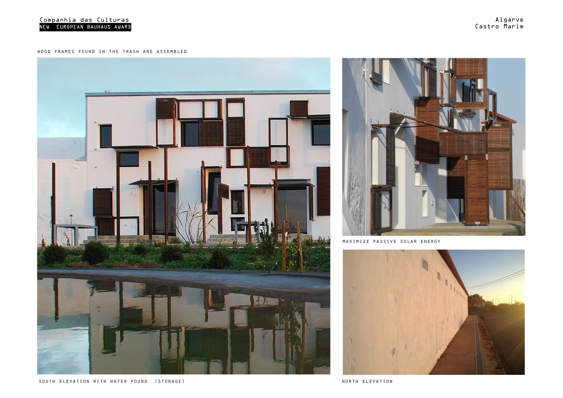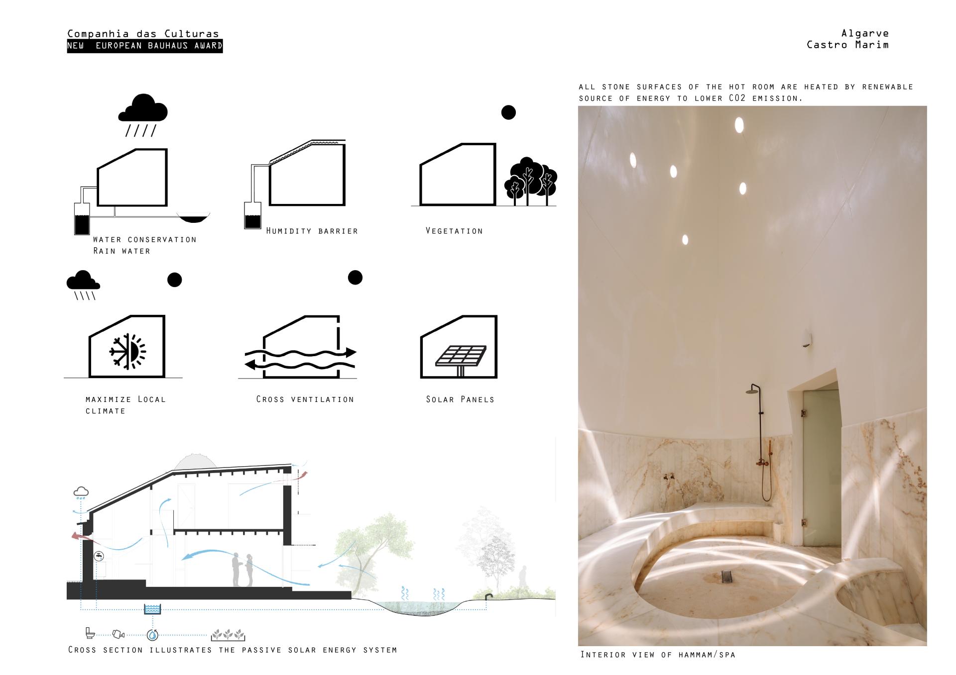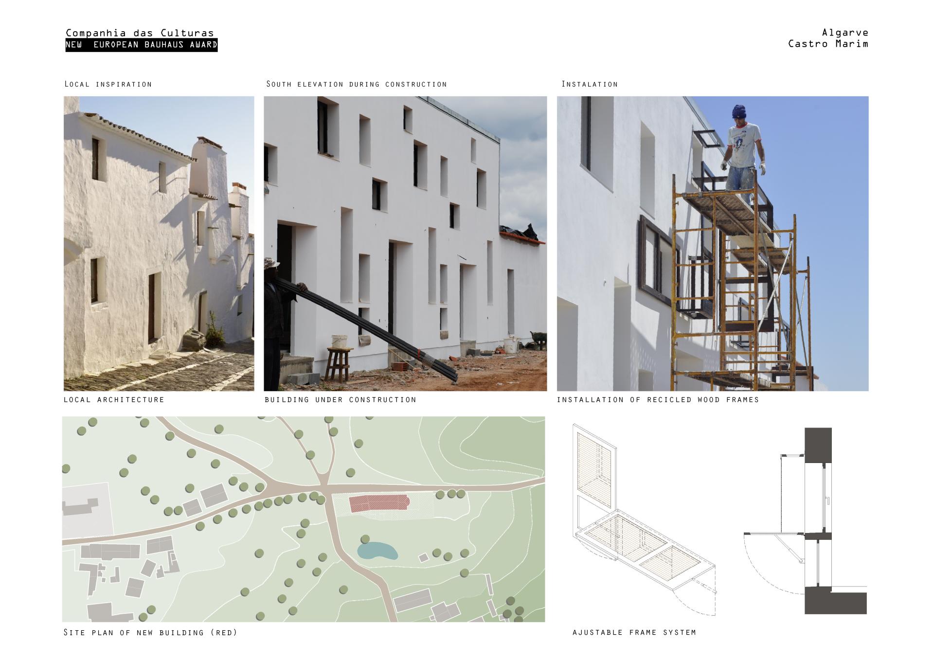 The project is located in the south of Portugal in Castro Marin one of the poorest regions in Europe. It received EU funds of 198 000€ to raise a new building over a footprint of a ruin (former agricultural facility) located inside the existing village. The project has housing units, for artists residencies and guest house and spa/hammam for locals and visitors. The organization of new spaces was made according to a challenging dialogue between innovative technologies and traditional methods, oriented by a sustainable strategy.