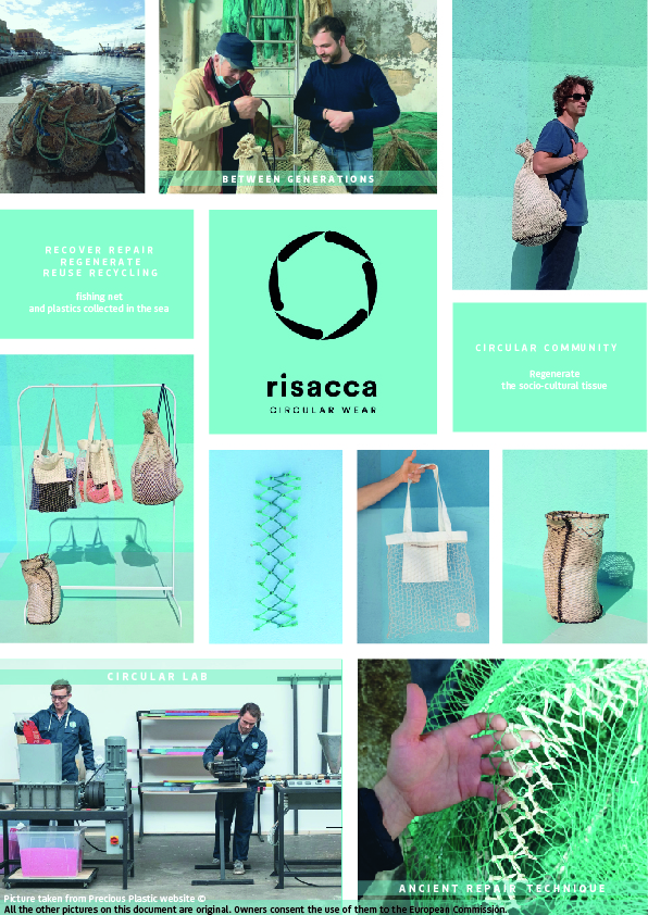 Risacca is an innovative product in the circular economy: it recovers fishing nets directly from companies in the fisheries sector, detects an output, normally not easy to dispose of, and transforms it into raw material for the production of fashion and design products.