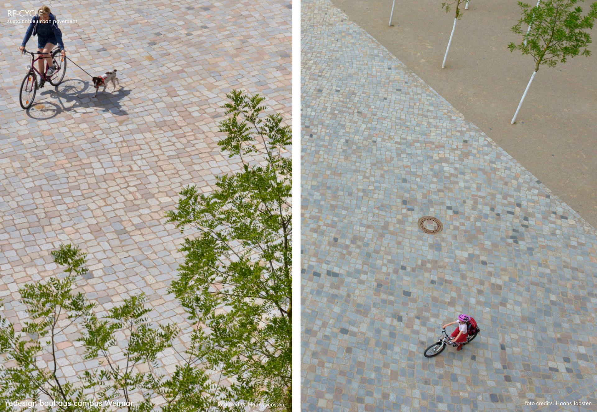 In accordance with the historical significance of the campus and its outdoor area, which is also used as a universal public space by numerous visitors, most of the paths are paved with reclaimed granite paving which is laid in the passe style. The reused granite pavement was previously secured in this area. In extension of the main access road to the campus it was installed in accordance with the requirements of monument protection law and gets an authentic revival as recycled material.