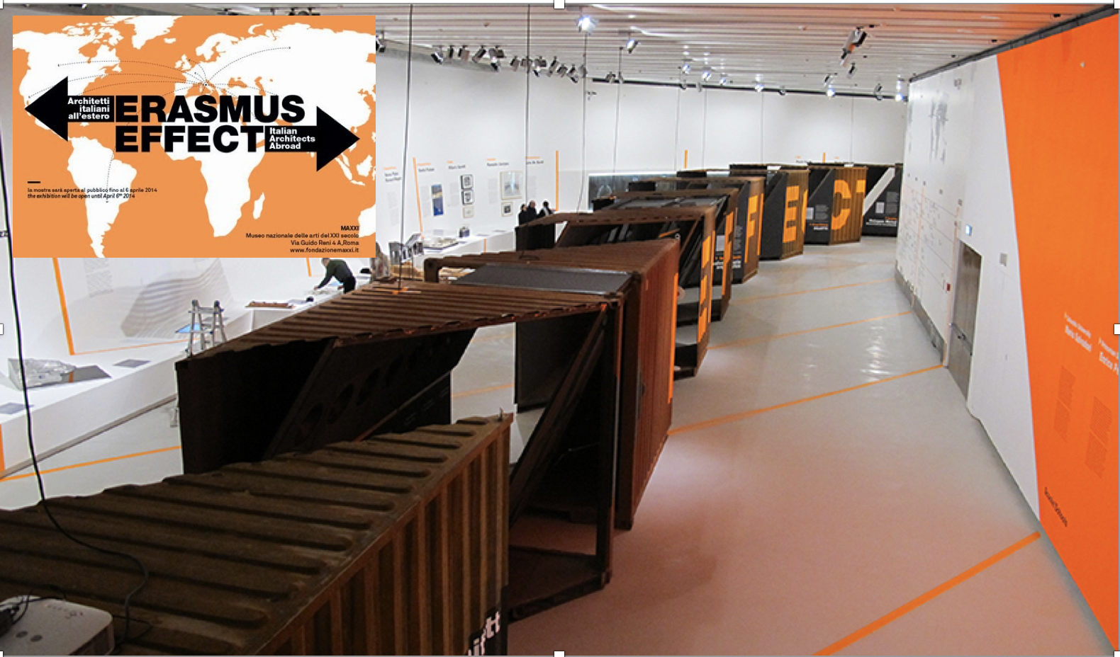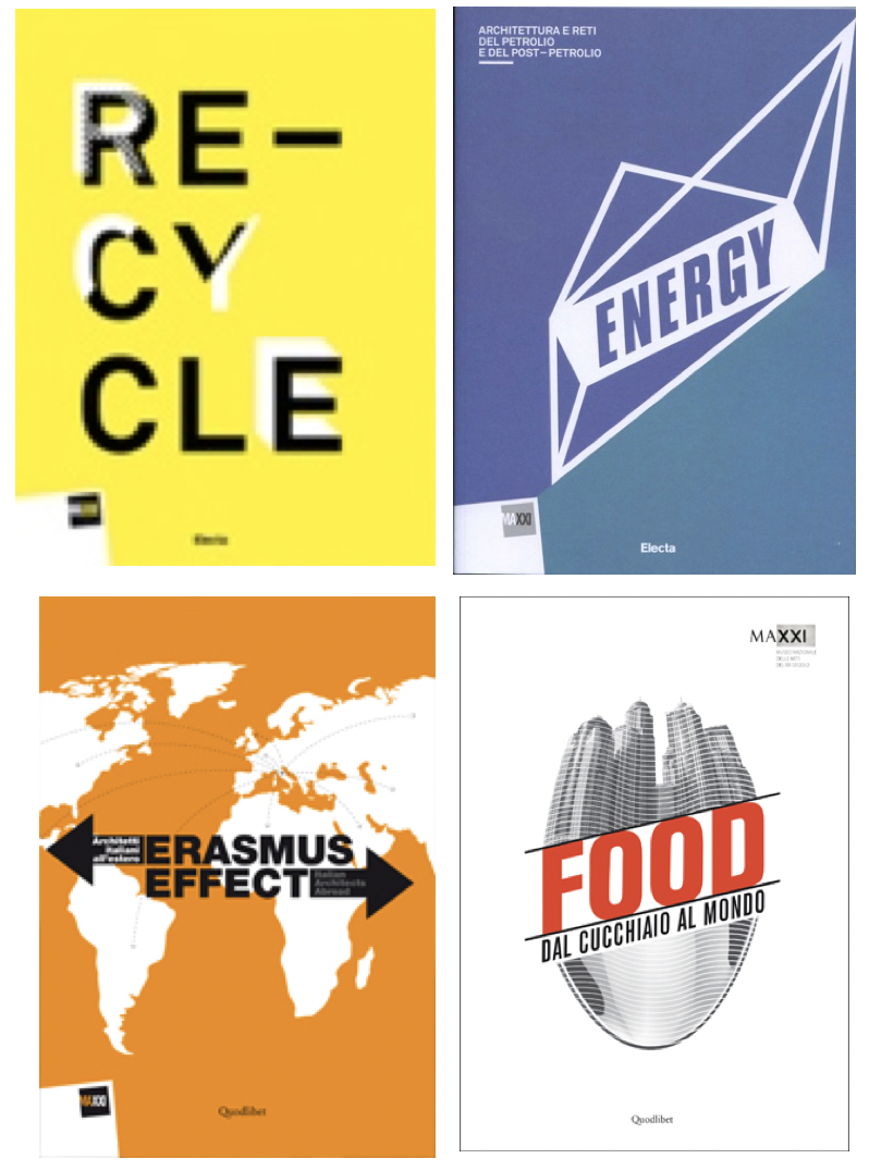 The project consists of a series of four exhibitions displayed in the first four years of the life of the MAXXI museum in Rome between 2011 and 2015. Our objective was to steer the museum identity toward an institution addressing the general public and open to external, non-disciplinary issues. In curatorial terms the idea was to challenge designers and artists to bring their "creative" tools to deal with the new compelling issues related to the environmental crisis, the geopolitical issues, the migration process, the (long awaited) change in the relation between technology, resources, inclusion, social issues. RECYCLE. Strategies for Architecture Cities and planet was a very successful episode in moving the architectural discourse from the "exciting new building" to the "exciting new way of recycling/reusing/transforming" an existing building. ENERGY. Oil and Post-Oil Architecture was encouraging designers to get inspired by the outstanding architecture production in the time of oil and plastic to challenge the potential and features of renewable resources, new materials, sustainable technologies etc. ERASMUS EFFECT chose the specific issue of young architects "economic" migration within and outside EU in order to both highlight the positive outcome of EU programs and to bring attention to the migratoin issues at a larger scale. Finally, in the year of the EXPO, FOOD Dal cucchiaio al mondo was looking at the food issue from a different perspective, linking it to concept of space, safety, neo-colonialism, public space etc.