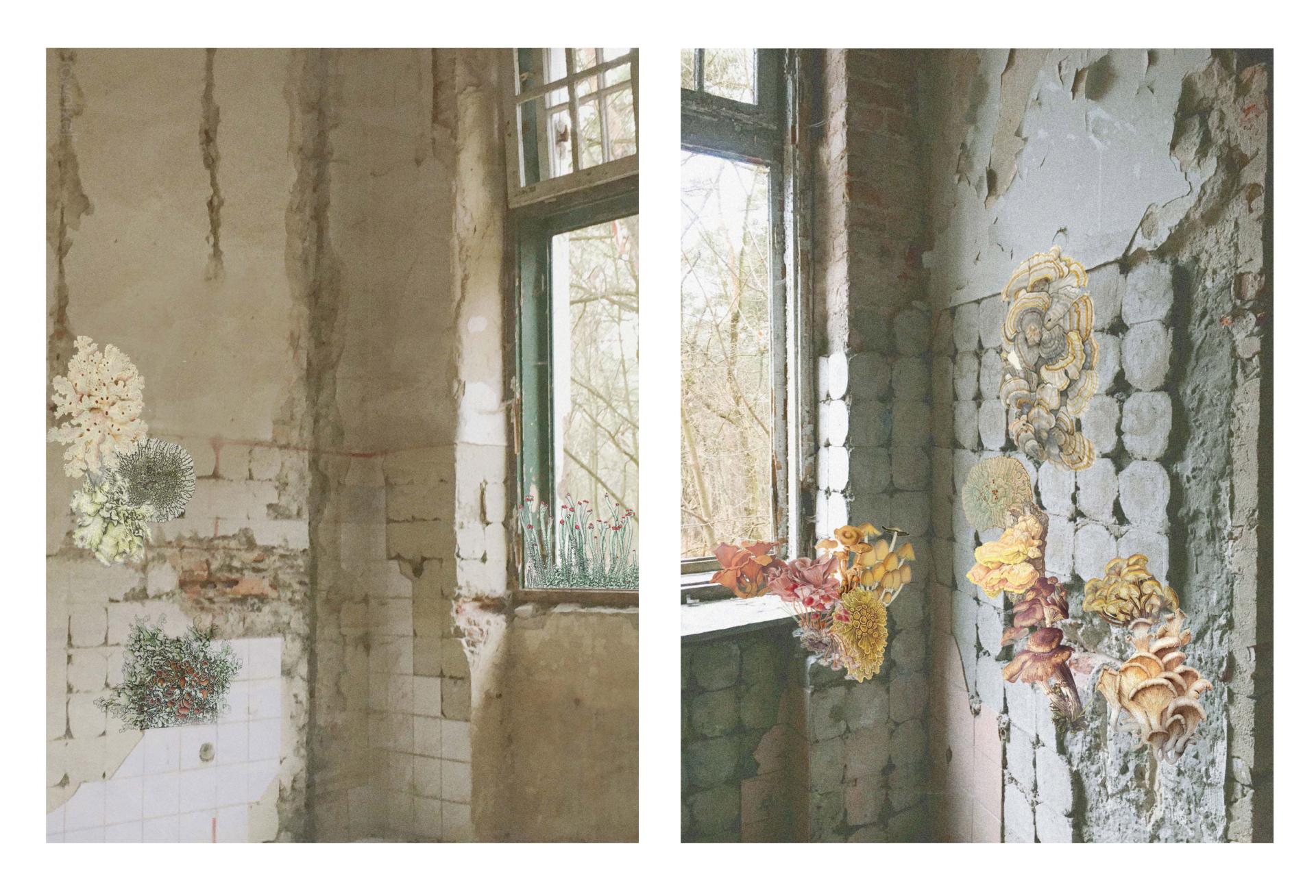 Regarding the preservation of the natural heritage, the project aims to re-establish the biodiverse nature on the site that has been ruined by the pollution caused by the inhabitants of the city, who use the forests as a landfill. Similarly, like the forest, the ruin is being rehabilitated in the process of giving it away to endangered species. I propose to infect the ruin with fungi and lichen, for them to become its new inhabitants and help it immerse even more into the surrounding nature, completing the life cycle of its existence in this place.
