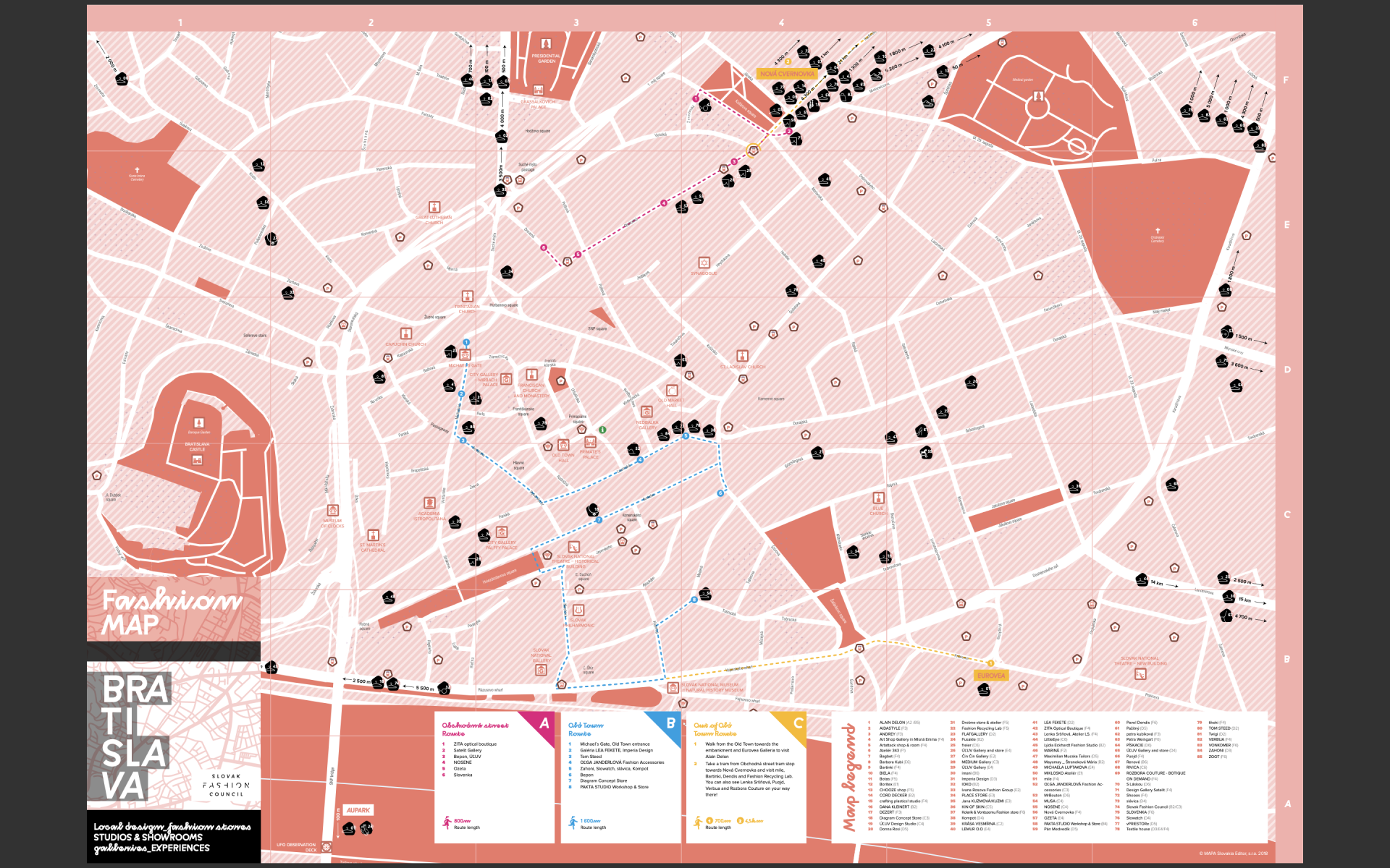 We all love to discover and explore new local shops, concept stores, fashion studios, and showrooms. We look for authentic experiences and feel good shopping and this reflects in our mood and communication to others. This is one of the attributes of high-quality cities that can be offered to their citizens as well as tourists. Bratislava Fashion Map is a proof that Bratislava is such a city and we can be proud of what it has to offer. Bratislava Fashion Map (BFM) is a list of local shops, concept stores, fashion studios, showrooms and other retailers and relevant spots that predominantly offer or promote Slovak and local fashion. Bratislava Fashion Map is an important tool that helps develop Slovak fashion industry and adds to other successful tools that help develop fashion tourism on a global level. We have received an excellent feedback from everyone who has seen the map here in Slovakia or abroad – including the stores, designers, fashion studios, showrooms and many industry experts and professionals. Slovak Fashion Council sees the necessity and at the same time the potential of the fashion system and the creative industry and thereby their evolution in Slovakia. Quality selling points and possibilities of the presentation of the design are a must for a healthy fashion ecosystem. They allow sustainability of functioning of local economies and last but not least they are a reflection of our city. BFM enables quality designers, gallerists and traders to be seen and found not only by the local customers but also by foreign tourists.