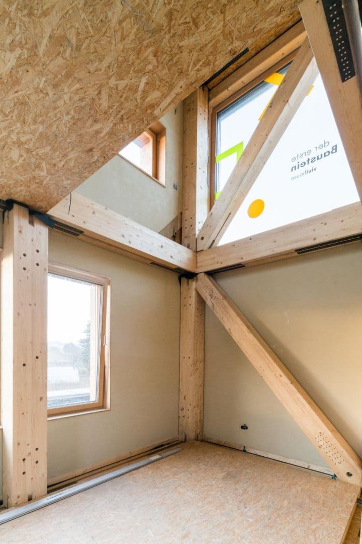 Within the framework of a research and development project at the Vienna University of Technology, the vivihouse core team together with a profound consortium developed the modular vivihouse building system in a first step. In the second step, the building system was used in a combination of teaching and practical building workshops to pre-produce a 1-storey and later a 3-storey prototype with students and other citizens, which was finally assembled on a building site in Vienna by professional carpenters. This prototype serves as an exhibition and information pavilion within the framework of IBA Vienna to showcase the core values of the project to a wider audience.