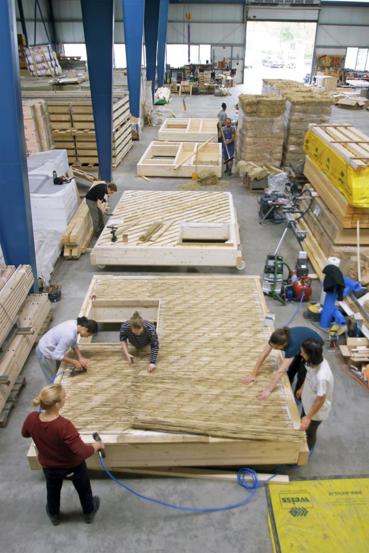 Based on the Maker culture, a vivihouse can be produced through the involvement of unskilled co-builders. An electric screwdriver and a few other tools are all that is needed for the basic elements. The production space for prefabrication is safe, at ground level and weather protected. Those with advanced access to tools and knowledge can also use high-tech automation. The three-storey prototype was built by about hundred international students and other interested lay people in guided construction workshops.