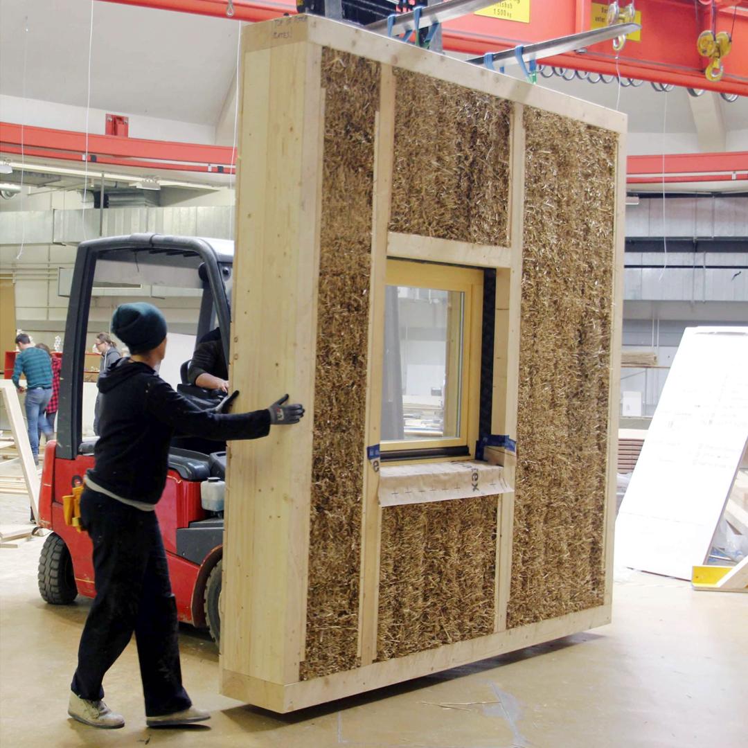The supporting structure is based on wood. Straw bales, as the main material, have a very low primary energy content (14 MJ/m³).The use of clay plaster made the plastic vapour barrier redundant. Our three-storey prototype (with approx. 80 m² of usable floor space) stores 15 t of balanced CO2-equivalent greenhouse gas emissions, which is crucial since up 39% of these emissions are related to building construction and usage. On average, one equivalent of a vivihouse façade element of construction waste falls for every Austrian per year. Therefore the building system allows non-destructive disassembly, transportability, reusability, recyclability and finally compostability at both resource and element level. This makes buildings more demolition-proof. Integrating used building elements can save up to 50% of the costs. Our first prototype was disassembled and completely reused in the second one. The disposal indicator (EI10) has a value of 8. The Eco Index 3 (OI3), an Austrian index, certifies 399 sustainability points.