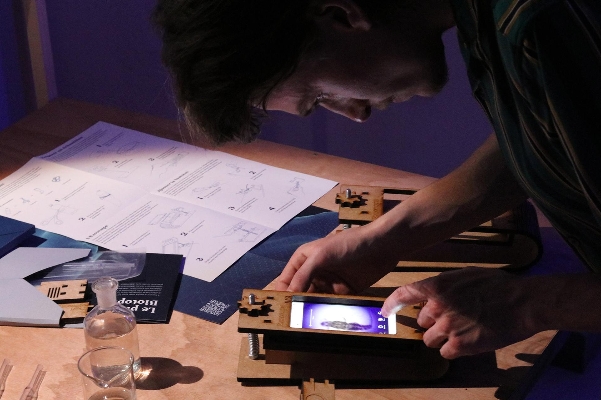 The Biotopia project allows the public to use digital devices as a means of contributing to scientific research and raising awareness about plankton. Our project offers a complete experience in three main stages. The first phase proposes to the participants to make their own plankton harvesting and observation kit, adapted to their smartphone in workshops, or with the help of freely available plans. We have called this tool the "Exoscope".