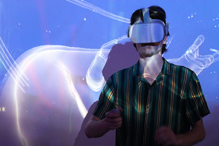 We have chosen to use virtual reality as a simulation space to reinforce the collaboration between scientists and participants. Also, this could be a good pedagogical way to simulate the interaction of plankton. With this device, the objective is to maintain the desire and curiosity of the participants. The notion of gamification used in our virtual space is a way to go further in edutainment learning.