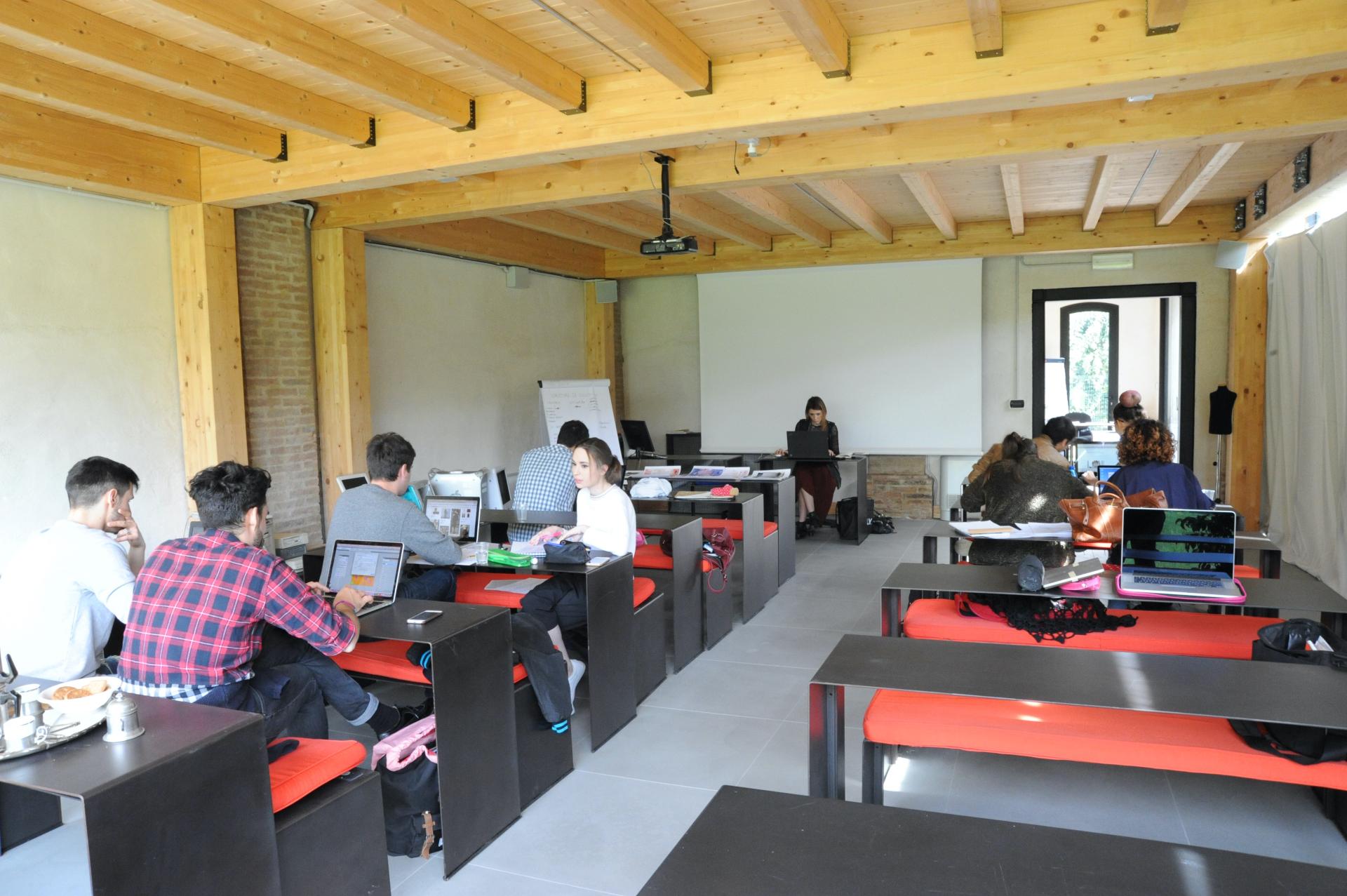 The mix of activities, made possible by the extreme flexibility of the spaces which from time to time can assume the role of classrooms, exhibition rooms, research center, archive, etc.