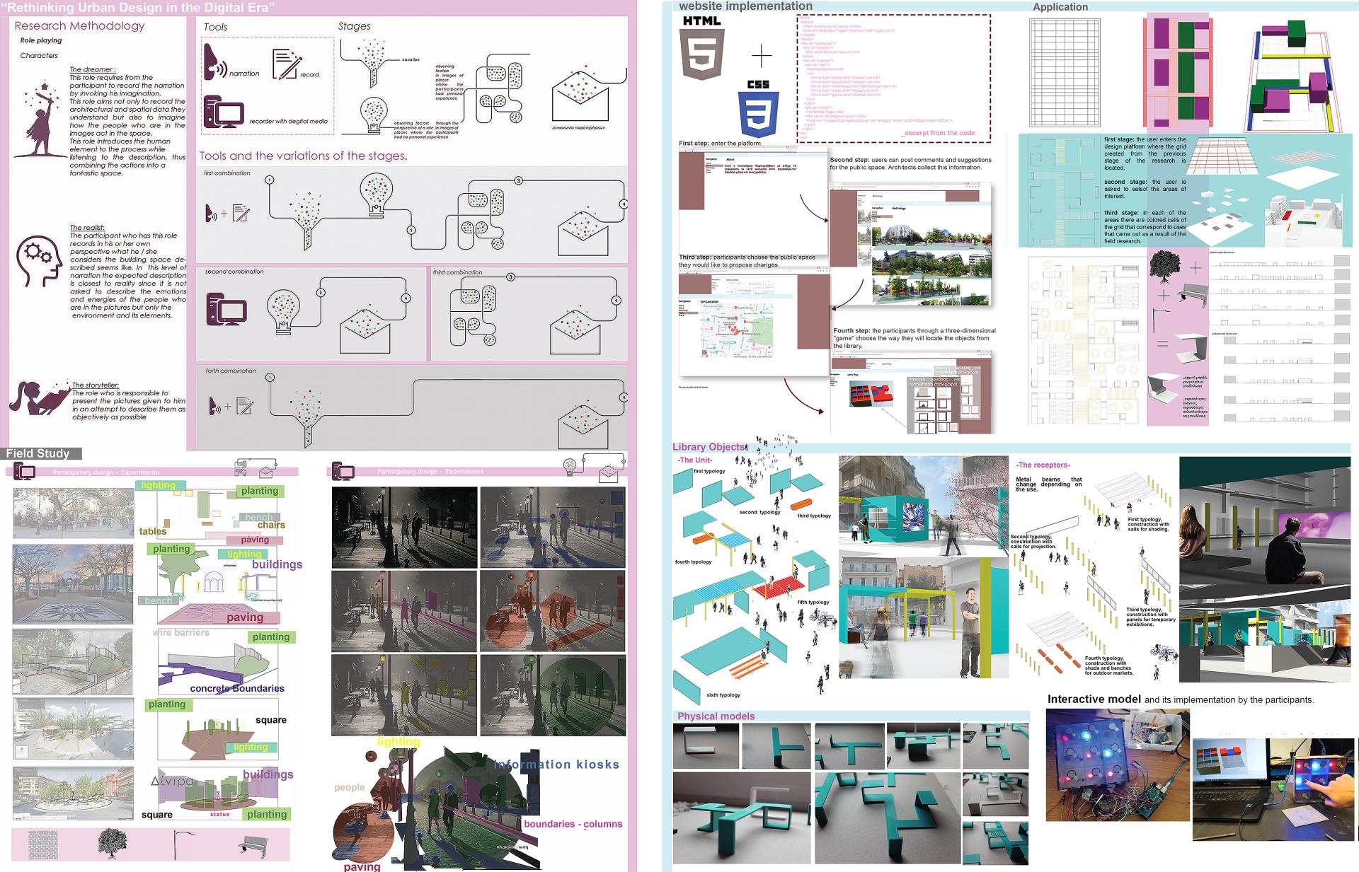 The project “Rethinking Urban Design in the Digital Era” explores the introduction of new technologies as media for modulating public space.The main goal is to reimagine the urban fabric through a novel design framework that utilizes digital technologies.This framework will empower citizens by bridging the digital gap and giving them the means in order to become modulators of the collective space.The methodology on which this framework is based is gaming and narrative as tools of participatory design.The expected result is to encourage a wider level of participation in the redefinition of the sense of urban space through the creative use of digital media.Thus a bridge between virtual and physical collective space is facilitated, leading to informative, useful and symbolically rich outcomes.