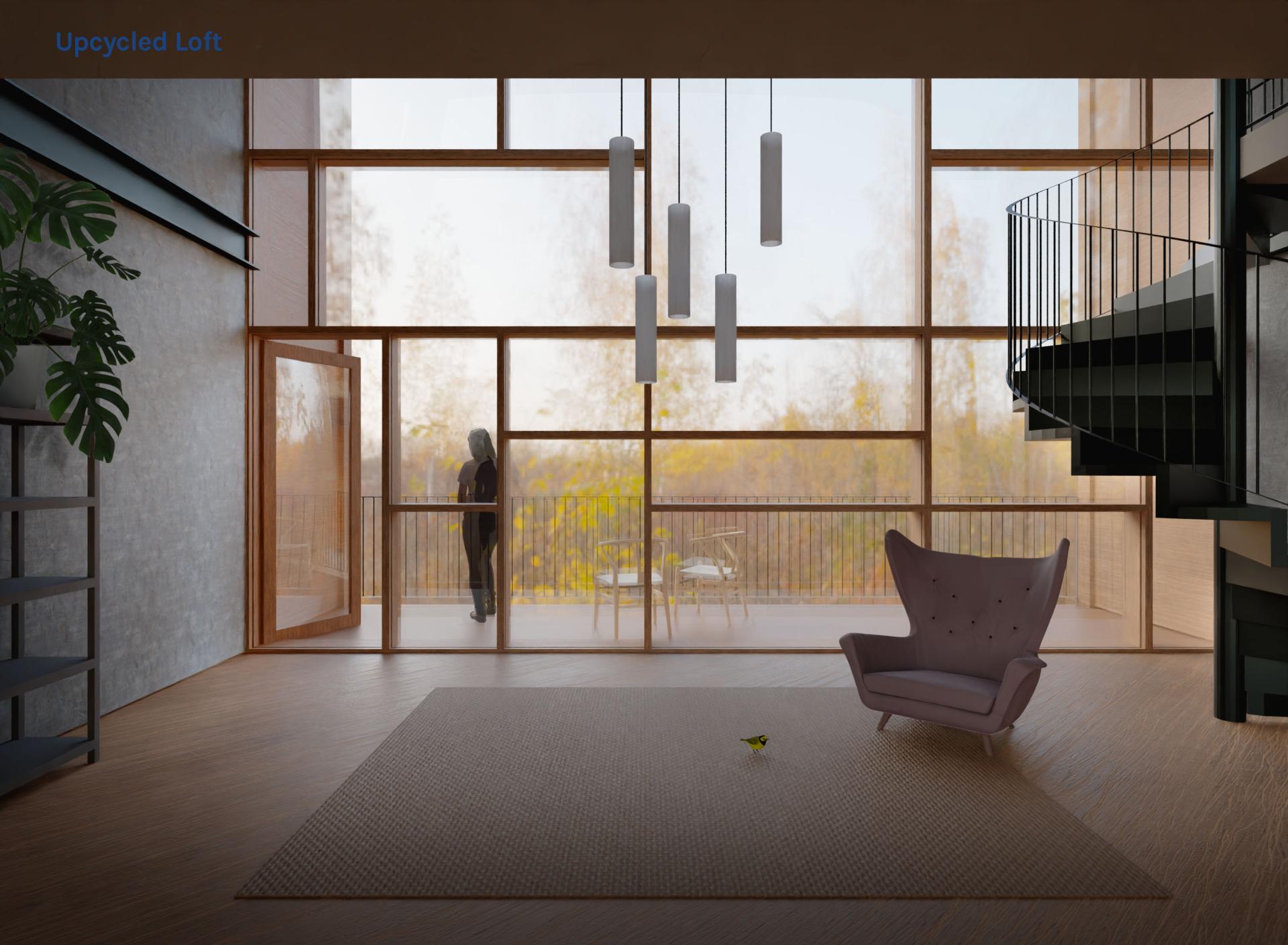 Upcycled Loft is a concrete, yet flexible concept that creates a desirable vision for all construction sector actors to drive towards. It suggests the direction towards sustainable futures but allows space for people to form and make it their own. Upcycled Loft is not just about a building but a concept proposing a social shift towards a more sustainable built environment.