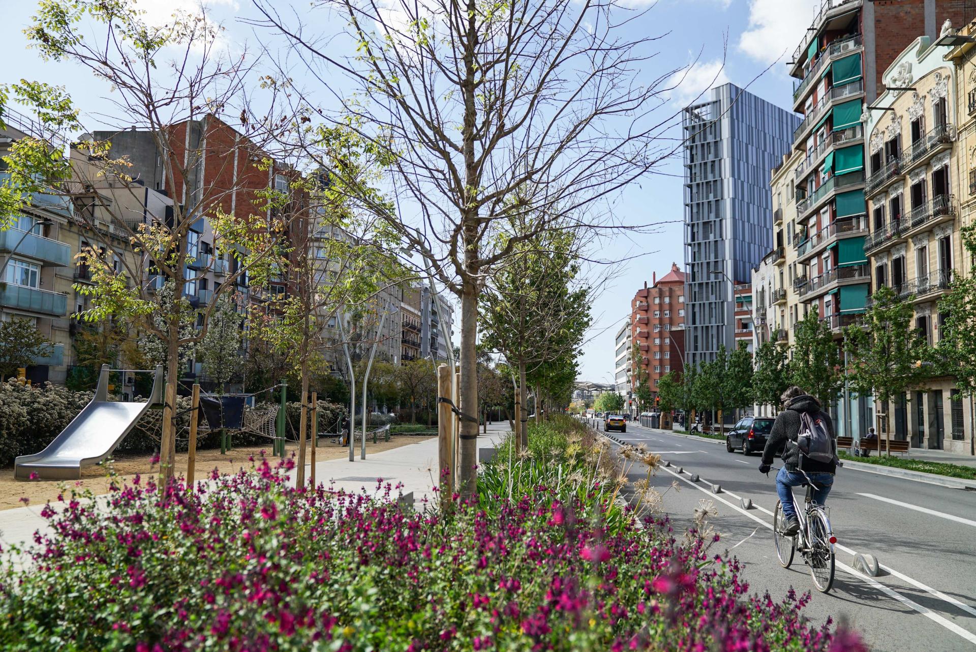 One of the neighbourhood requests for the transformation of Meridiana was literally “to turn the avenue into a civic axis of reference for the city, a green avenue where vegetation, children's leisure spaces and street furniture invite the public to live, and do not live it as a barrier that divides neighbourhoods”. And so this premise has been the basis of the project.
