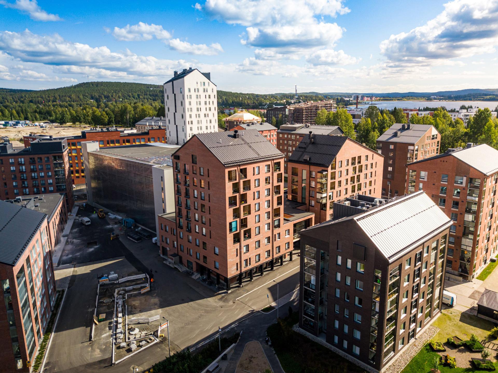 Jyväskylä Kangas is an old paper mill area next to the Jyväskylä city center. Once this city center extension will be complete, the area will inhabit approximately 5500 residents and 2000 workers of various businesses. As the first phase of Kangas is complete, there are an estimated 1000 residents and 1000 jobs currently occupying Kangas. The area is over 30 hectares and will continue to be developed until its planned completion in 2035. From an urban planning perspective, Kangas is a gem. Kangas is situated at an essential transition hub for the city and Kangas rests on the border of the nature-rich Tourujoki valley (a conservation area). The identity of Kangas draws from the area’s long industrial history and its heritage protected red-brick buildings. Kangas combines high quality urban planning and architecture, ambitious sustainable goals and innovations from smart city solutions to construction and maintenance. Kangas is a forerunner in many ways. The partnerships formed between the public and private sectors as well as the stage-by-stage implementation ensure that the area’s development coincides with societal change. At the beginning of development, a long participatory period was conducted for citizens. This confirmed the interest they had towards the area and acted as a first step for actively engaging in the development of Kangas in the future too. As a result of the participatory period (and related research projects), several objectives were established to drive sustainable development, smart use of resources, carbon neutrality, community, experience, quality and environmental friendliness. These emerge through daily needs, such as common and efficient waste management solutions and garden areas, which reduce excess maintenance traffic. Common green areas represent community spirit, the quality of implementation and smart use of resources. Centralised parking in parking houses frees space for gardens and enables a compact and urban town-structure.