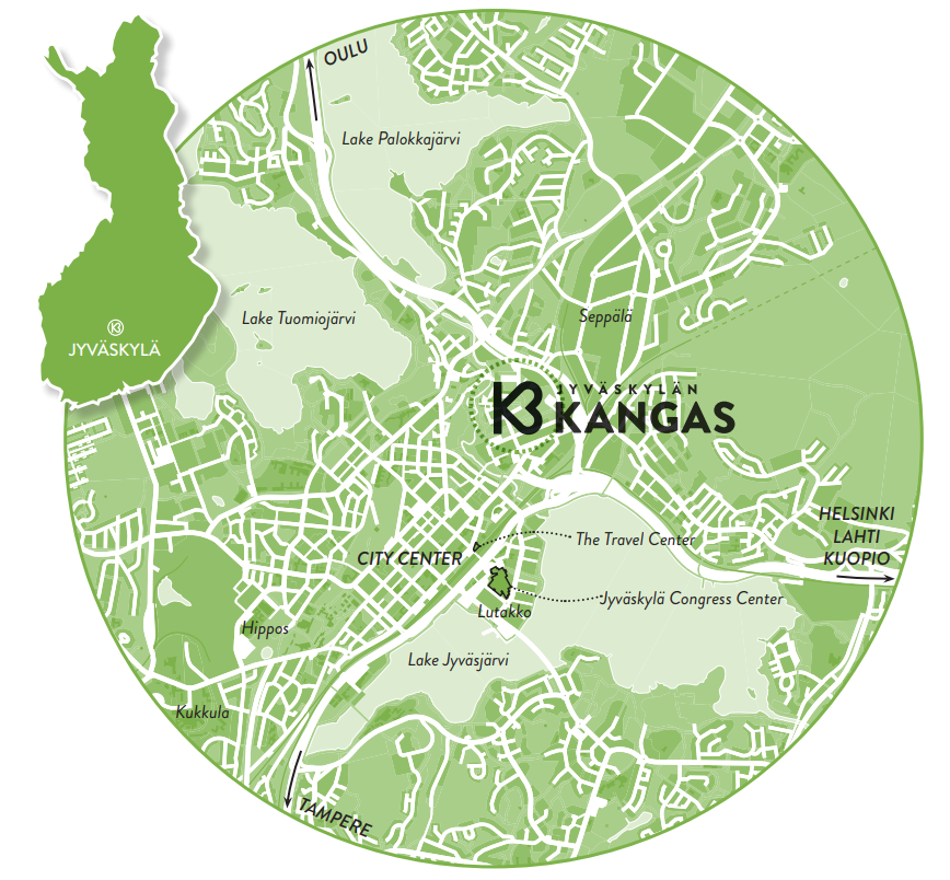 Kangas is an oasis born out of one of the most traditional industries in Finland: paper. An old paper mill has been transformed into a sustainable, green and smart oasis capable of housing over 5000 residents and over 2000 jobs. Kangas rests at a core transition hub, linking the south of Finland to the North, by the city center of Jyväskylä. Moreover, despite its historical roots in industry with iconic red-brick buildings, Kangas is bordered by the conservation area of Tourujoki- valley.