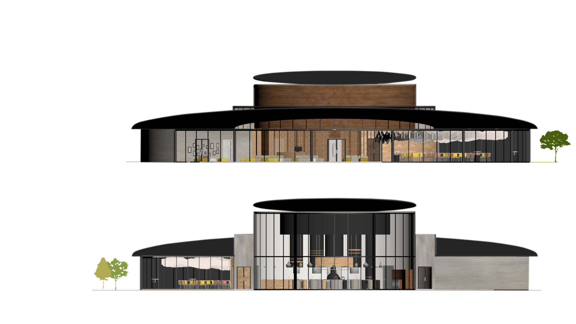 For the 'MeetEat' Home, the pilot project aiming to create inclusion through cooking and sharing food, the architecture is characterised by circular shapes representing the concept of 'containing', like a pot or a cauldron where ingredients are transformed into meals and rituals. The structure is composed of two cylindrical and concentric volumes: the central volume is the Kitchen, which is the core of the experience in this Home. This is the space where the transmission of knowledge, rites and myths takes place. For the design of this area, an innovative organisation of kitchen tools was chosen, following the desire to abstract as much as possible from specific culinary traditions in order to maintain a neutral and open approach. The main distinctive feature concerns the central cooking blocks: oven, grill, fryer, etc., are here identified with the ancient bonfires around which the community gathered to hear the people' myths.