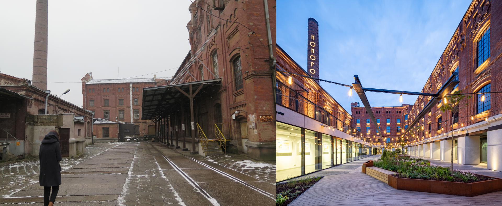 Monopolis is a former factory from the end of the 19th century. It was a closed area for over a hundred years. Already at the beginning of the investment, all available materials about how people lived and worked in this place were collected. All these records in the photo and interview fort are now available at the museum which is part of the investment. In conversations with these people, we listened not only to the memories, but also to what the local and former residents want. All of this affected the mix of functions that formed the output for this endeavor. The final effect was also influenced by the city authorities, which were very supportive of such a unique adaptation of one of the abandoned factories, as well as the conservation office in agreement with which all modifications necessary for technical reasons in the historical tissue were introduced. This design work was also selected for cooperation with local companies.