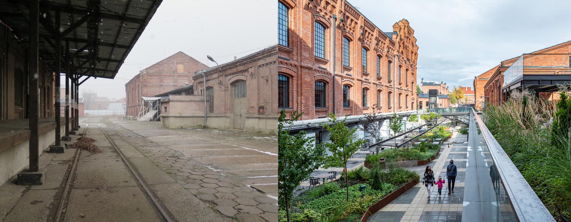 The aim of the project was to change the former factory of vodka production into a public space open to all people. This was achieved by opening all gates and entrances to the investment area and even relocating historic fragments of brick fences. Thanks to this, the city of Lodz, instead of a closed and inactive production plant, gained a new place on the map of urban public spaces. In addition, a huge amount of carefully selected greenery has appeared in the entire complex. From the industrial facility, we have a friendly and green place to spend time.
