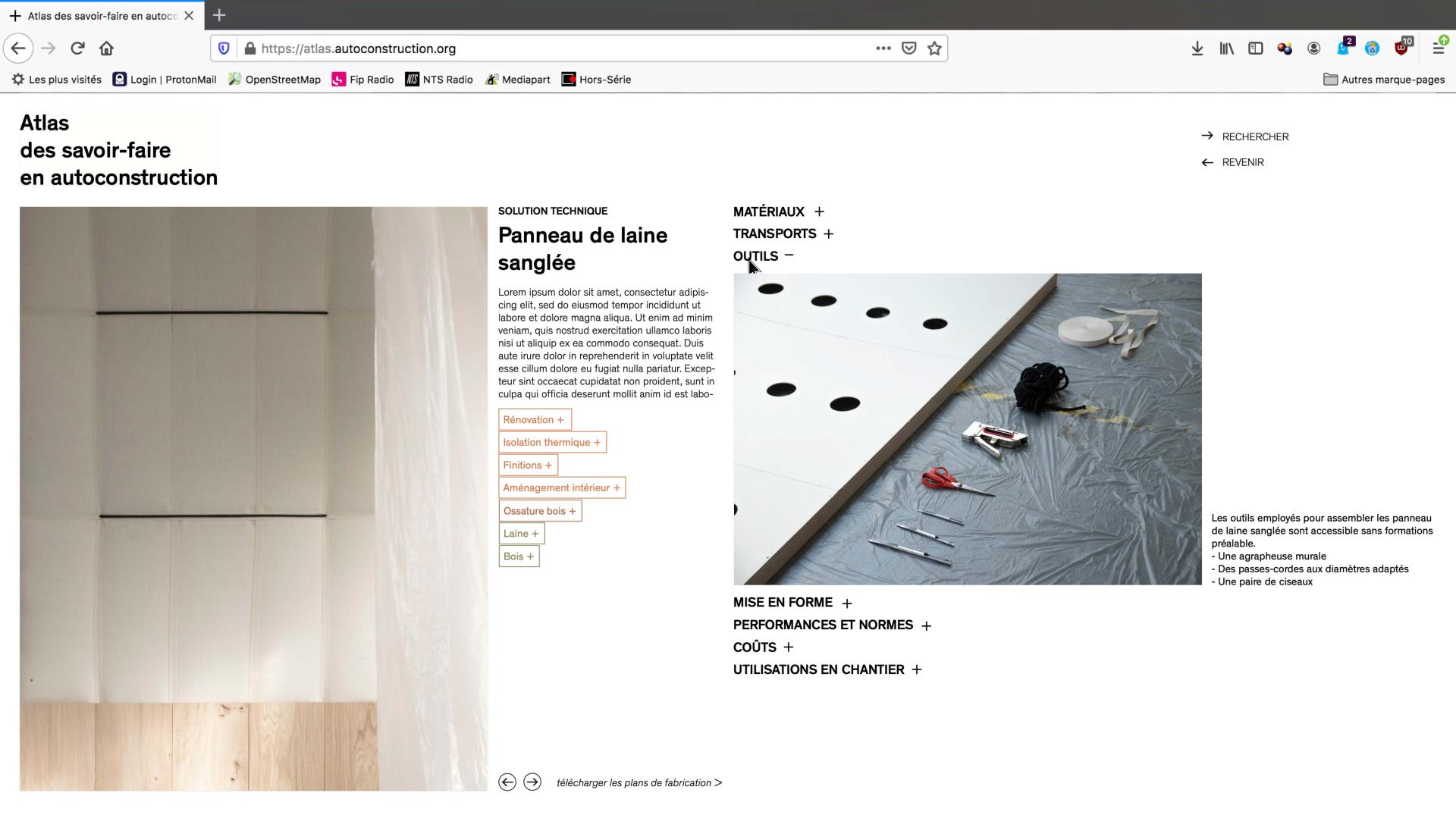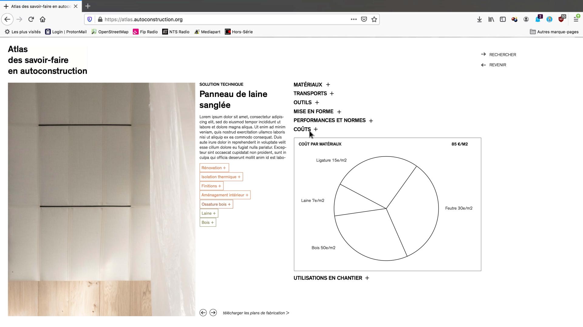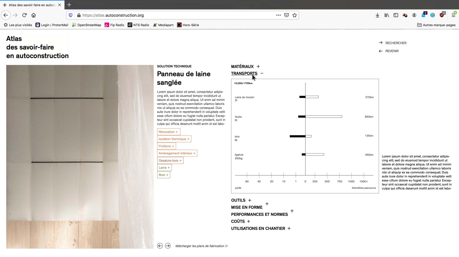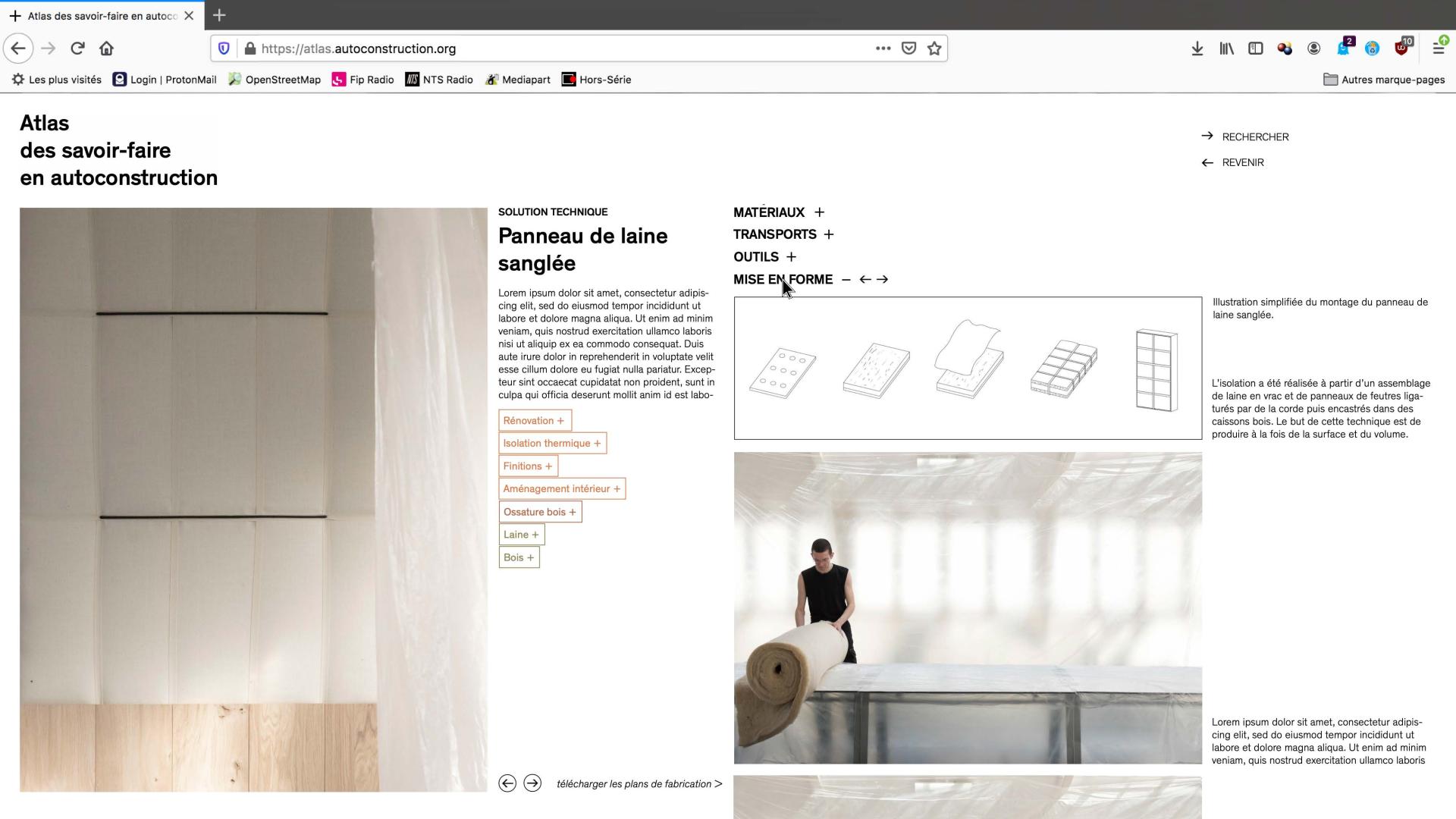 The project is rather a construction guideline than a product. To share the process in an open-source model, an online platform has been developed. Working as an archive website, it showcases projects that use sustainable construction techniques. Plans and images are available to recreate those techniques as well as a map that pin where materials have been sourced and their distances from the construction site.