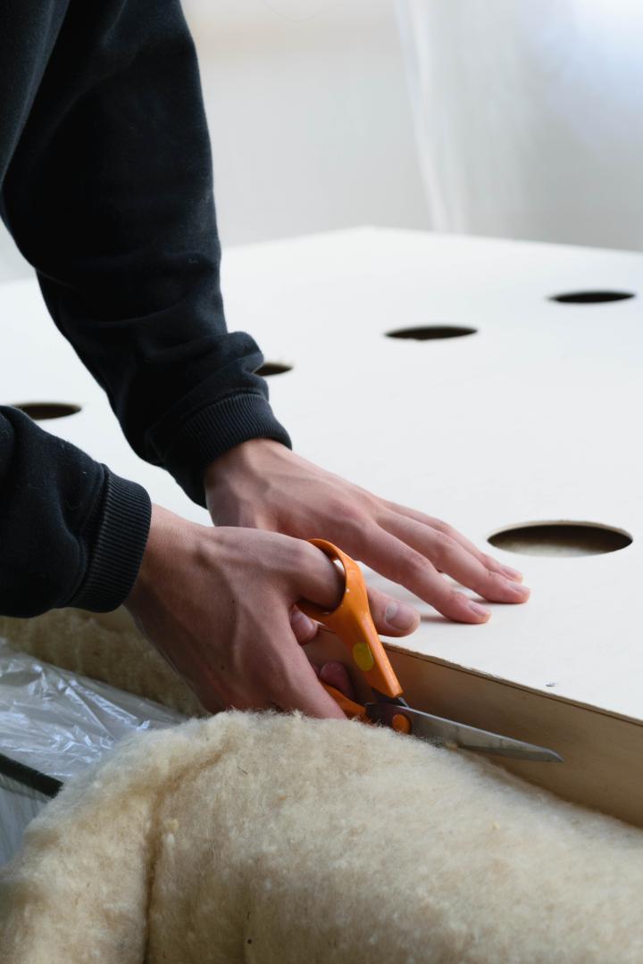 In France, sheep’s wool is also facing a major crisis. In many cases, this high-quality material is burned or exported due to its expensive cost of treatment. Facing these two problems, the project Wool Wall explores new ways of shaping insulation by proposing a wool panel, adapted for self-construction and interior renovation.