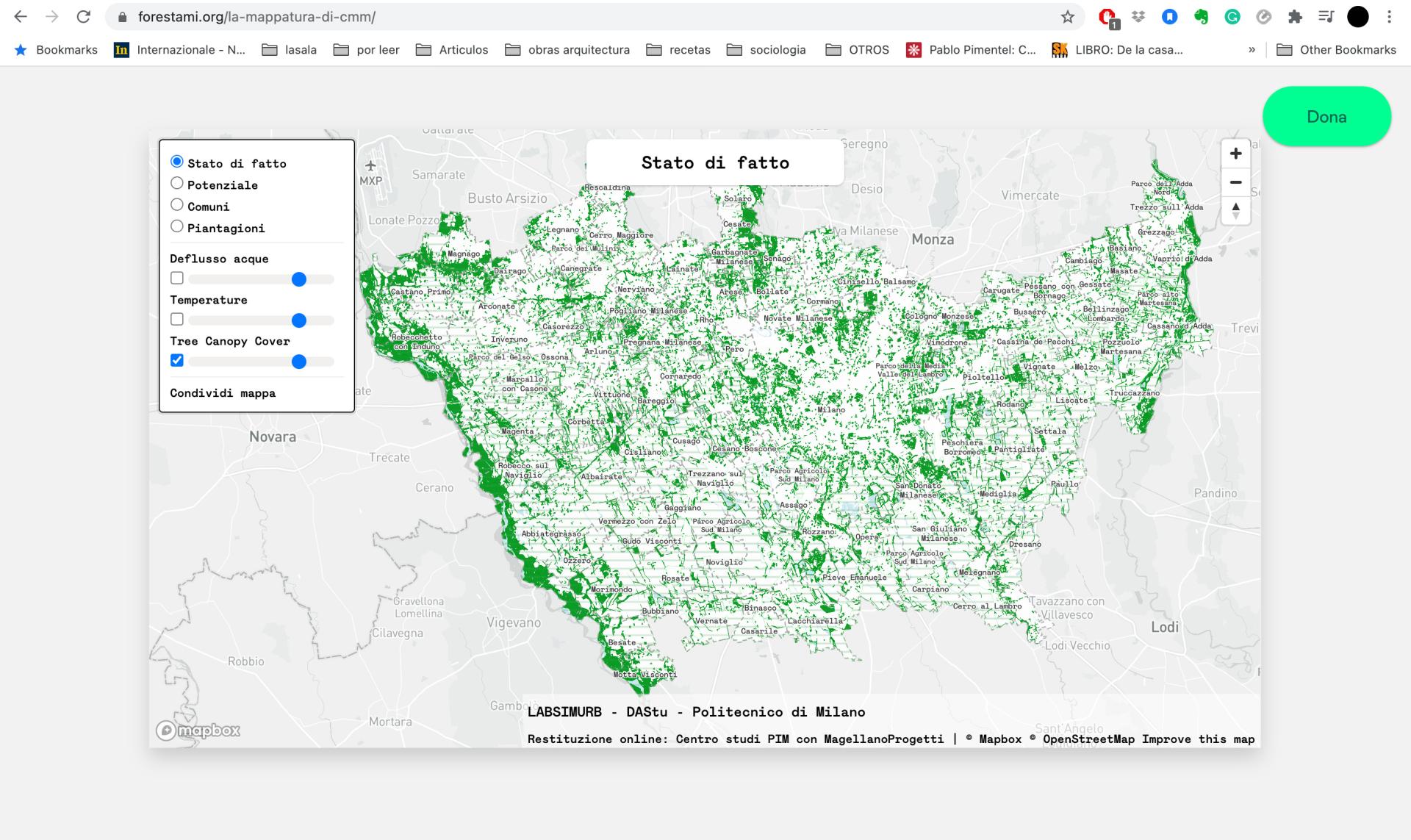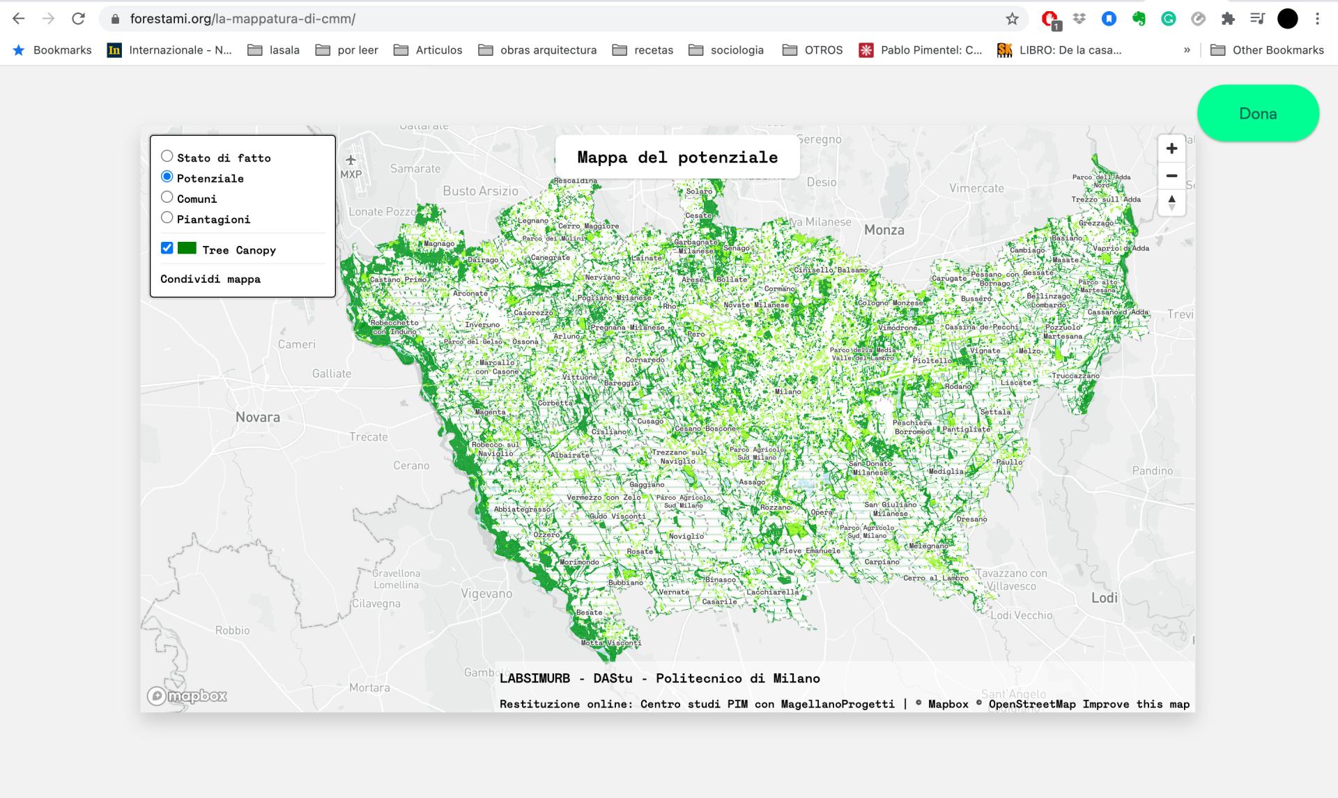 The innovative character of Forestami can be divided into two main aspects. The first is the dual-direction approach, simultaneously top-down and bottom-up, of analysis and of engagement of citizens and stakeholders. As part of the first phase of the research process, the project dedicated a module to a territorial analysis which was aimed at finding specific areas where to plant, “a top-down analysis” based on the use of multiple geolocalized databases, that were confronted between them and unified, compared later with different typologies of planting. This analysis allowed the team to individuate areas inside the city with a high tree planting potential and also helped to prioritize the projects’ categories, based on their real potential in achieving the final goal of 3 million trees.