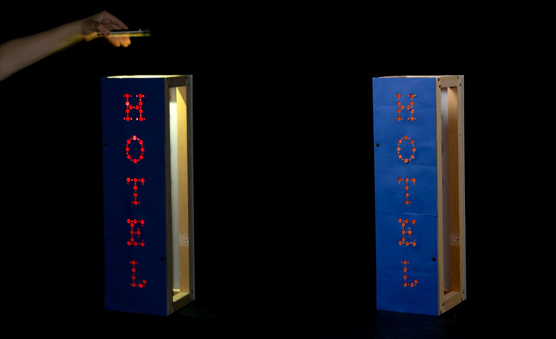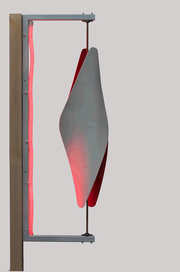 As part of my research that focuses on light pollution and signage devices in the urban environment, I’m proposing a series of self-sufficient signs that operate using the energy sources that already surround us. Many of these energies are today far too underestimated: natural light, wind, mechanical movements and electricity that the city already mobilizes, and whose use can be optimised. How else can we signal, with humour and cleverness, in the luminous jungle that demands our attention night and day? I offer several types of signs. Some turn with the wind, others are activated by the movement of the shop doors. Still others play with the natural or artificial light that illuminates our cities.
