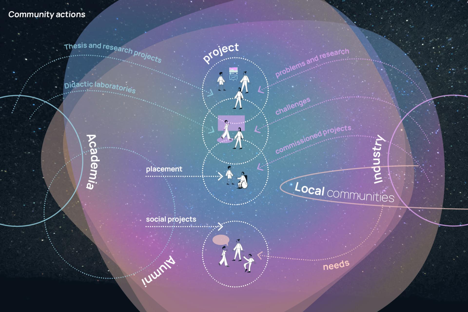 The close relationship with the University becomes a key point for the ongoing education of the community members and for citizen science actions which include applied research actions thanks to the cooperation with several organizations. First of all with the Advanced Design Unit of UNIBO, a community of teachers, researchers and experts dealing with the project's cultures and their continuous innovation, through didactics, research and third mission, with events, relations with the territory. And with CRICC, a Research Center for the Interaction with the Cultural and Creative Industries of the UNIBO. The goal is to overcome the concept of showcase-community for student placement but to enable an ecosystem that already exists as part of a process which has had several experiments from 2015 (e.g. Bologna Design Week)