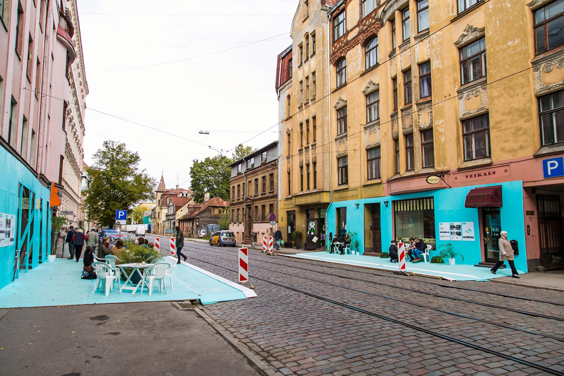 In 2014, we made a video of the Mierīgi! project and posted it online. The idea resonated with people worldwide. By now the video has been viewed over 120 thousand times, and we have received countless messages from people wishing to build street space prototypes in their cities. The project was among finalists for the European Prize for Urban Public Space in 2016, and it has been included in numerous publications, exhibitions and film festivals worldwide (São Paulo Architecture Biennial, a+u magazine, domus magazine, MoMA Uneven Growth online exhibition, to name a few). We are often invited to give talks at architecture and urbanism schools, and it seems that Mierīgi! is regularly referenced by students as an example of tactical urbanism. The project's popularity proves that communities, activists, urban designers all around the world are looking for innovative ways to let their cities know that people want to reclaim street space from cars. Mierīgi! has provided inspiration as well as a practical tool for testing urban design ideas in situ.