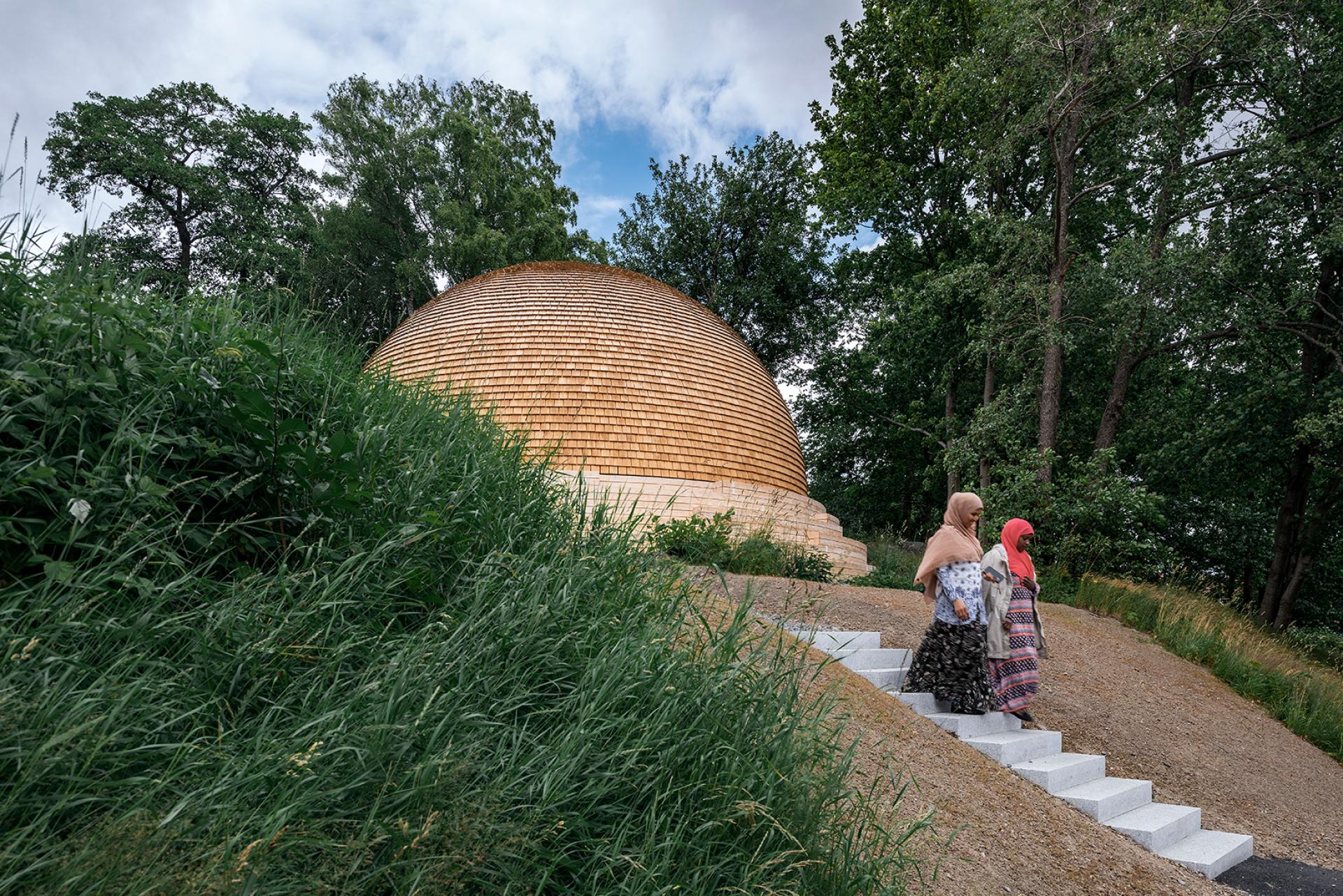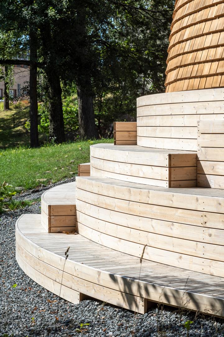 The dome is placed on a site where many people pass. The stairs around the dome, which you can sit on, invites to take a break or a “fika” as it is called in Swedish. The steps are directed towards the south making it enjoyable to sit here on sunny days.