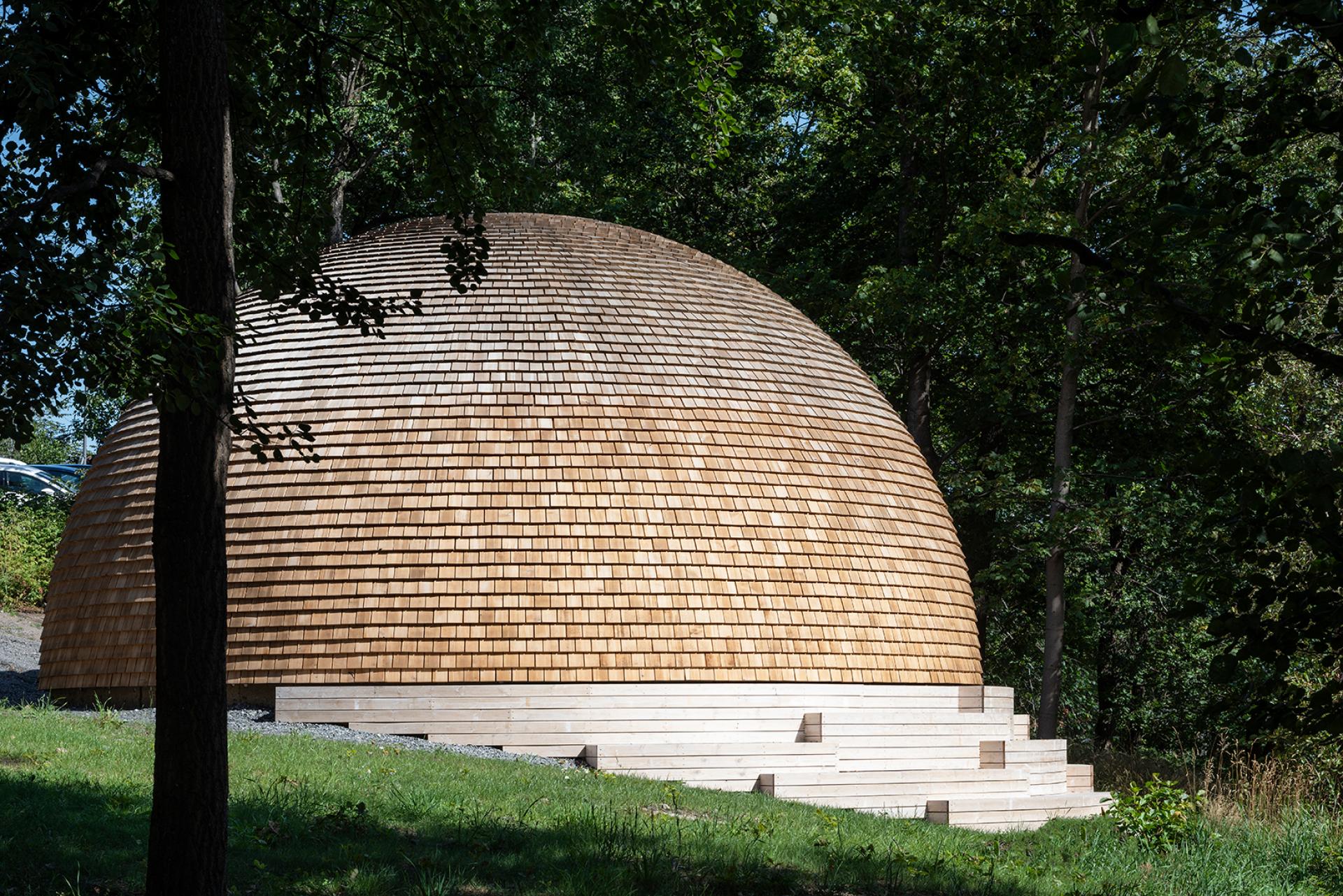 The dome is built completely in wood which is a renewable material, making the building carbon neutral.