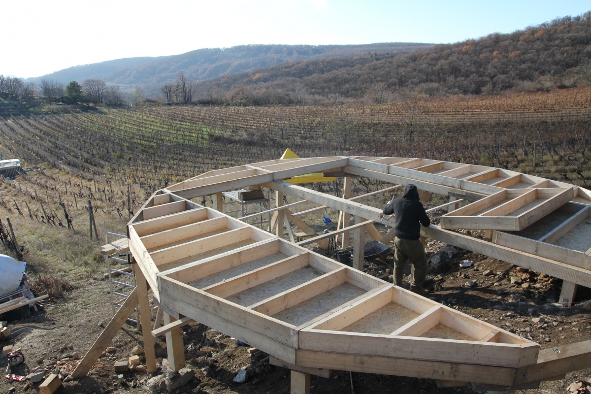 of the house are formed by wooden beams fixed on screws (ground screws)