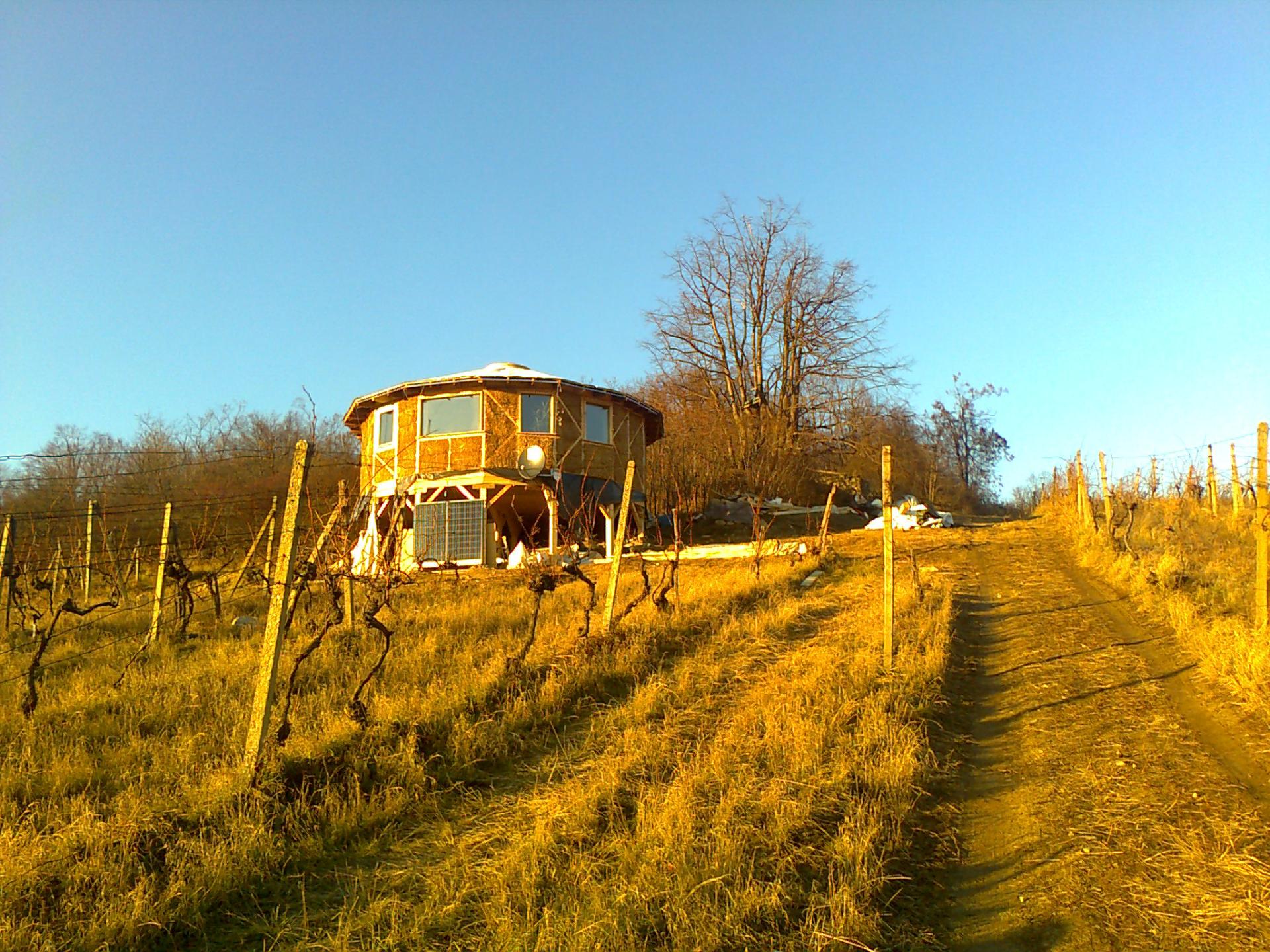 In a beautiful place out in the country, in wineyards near forests, we built an all-natural removable mobile round house ("upgraded yurt") that is not firmly attached to the ground and is not connected to any utilities. It's fully off-grid and self sufficient. The electricity is generated by the low-budget high-economy solar system for no more than 1000 EUR. A composting separation toilet is included. It's standing here for almost 5 years already and we are living here daily for 2 years.