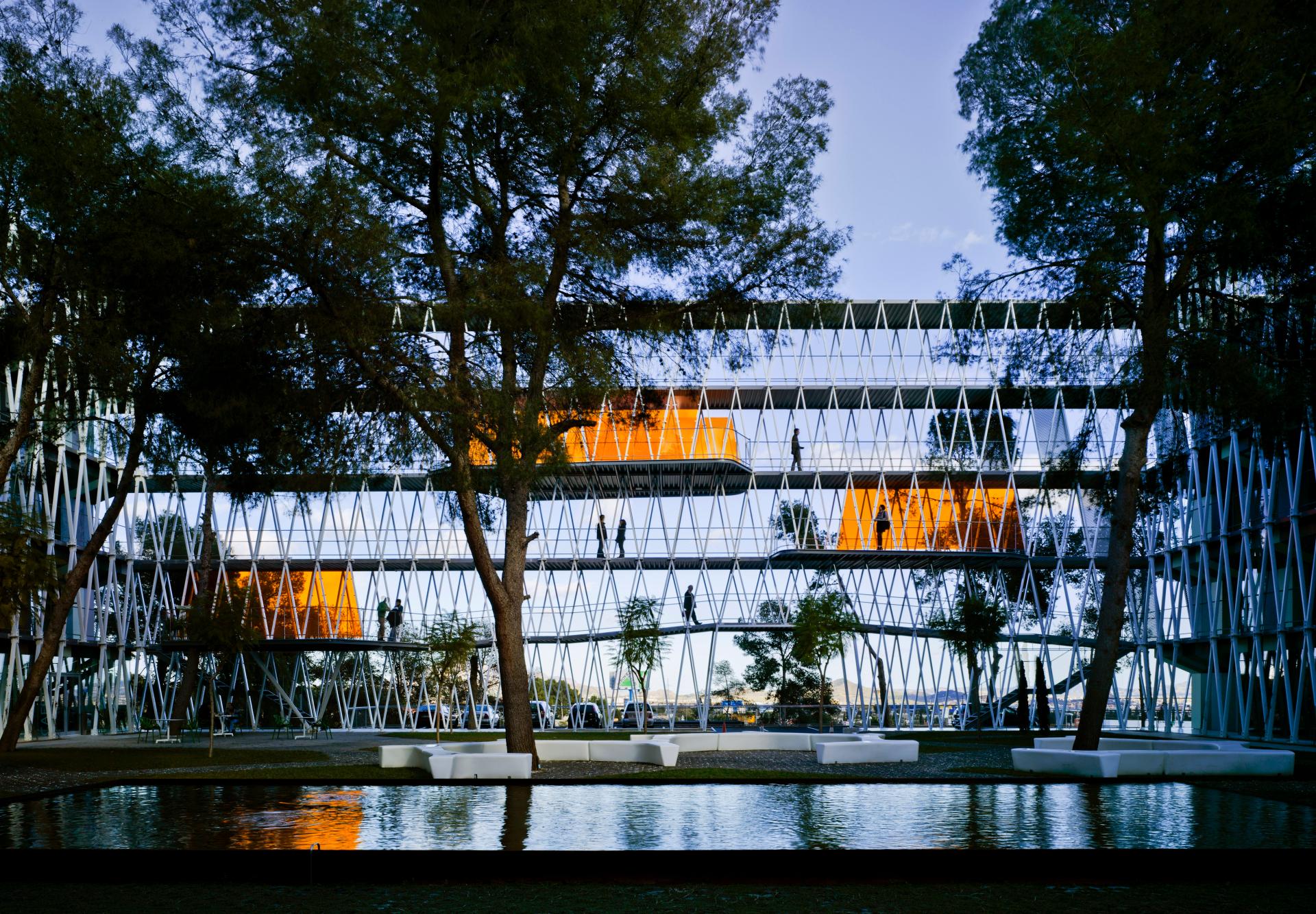 The centre was built on 3 old buildings of a former psychiatric centre located next to the university of Murcia. The project maintains and enhances the nature of the site by inserting the buildings within the Mediterranean forest and creating the precise mechanisms for their hybridisation. The programme, which enables the setting up of companies in areas from 50 to 300 sqm, is fulfilled by means of the flexibility granted by the modular use and facilities easily accessible from the façade and connected to the cover.