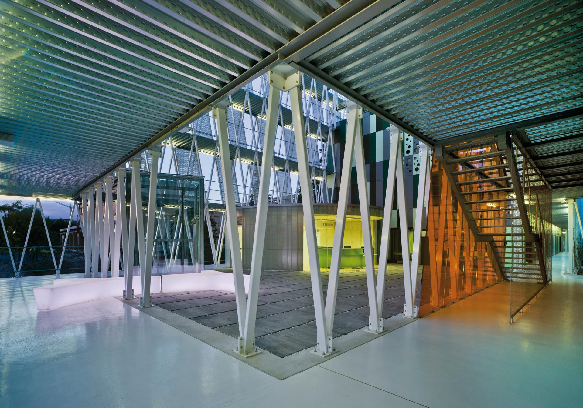 The NE section of the gallery completes the ensemble and creates platforms at several levels, so that we can use these spaces among the canopy of pine trees to relax or to work, a possibility allowed by a Wi-Fi network which reaches this whole open air environment.