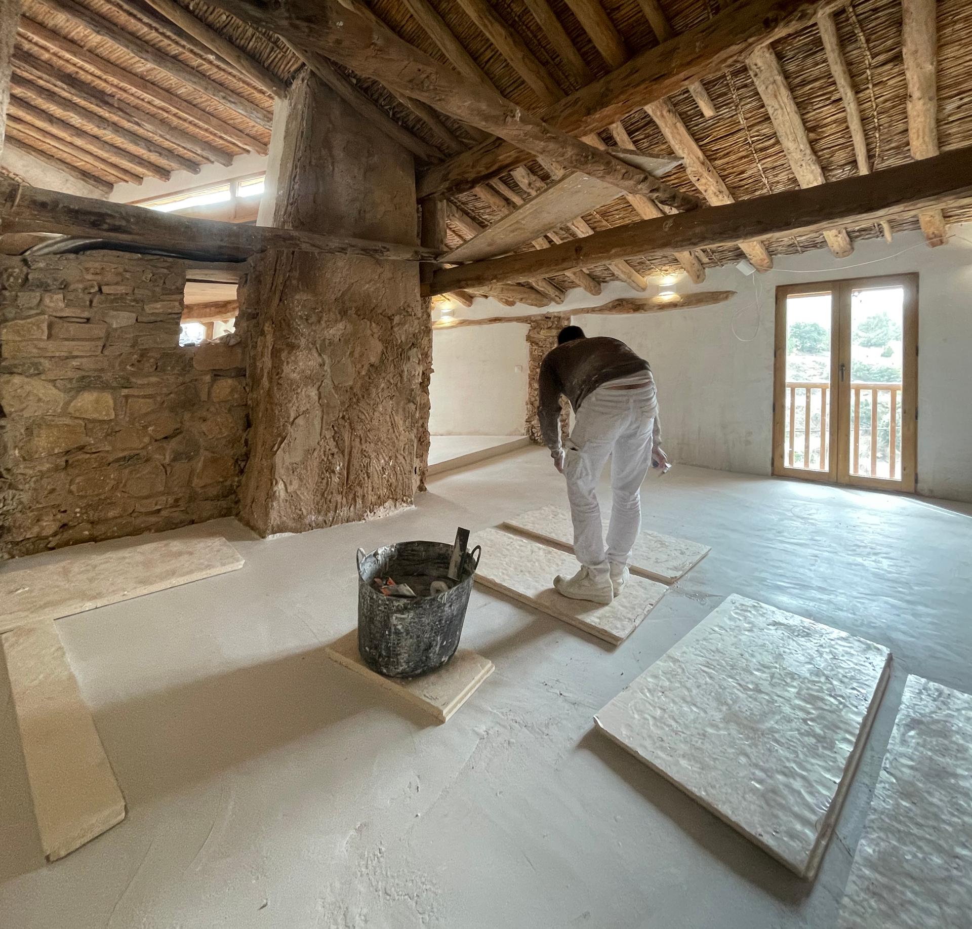 This co-creation process involves the architect, owner and master builder, but also history, tradition, material culture and the idiosyncrasy of local materials. For example, the process of reinforcement and consolidation of floors and roof incorporated a gypsum compression layer which was reinforced with locally sourced natural fibres (straw, wool, hemp, reed…). Samples were extracted from all these and tested in laboratories to decide which combination offered the best results, subsequently using it on site. Materials were all local and traditional, with a low carbon footprint, although the execution was contemporary. The structural properties of the reinforced floor were on a par with those of a floor built or reinforced with cement-reinforced concrete.