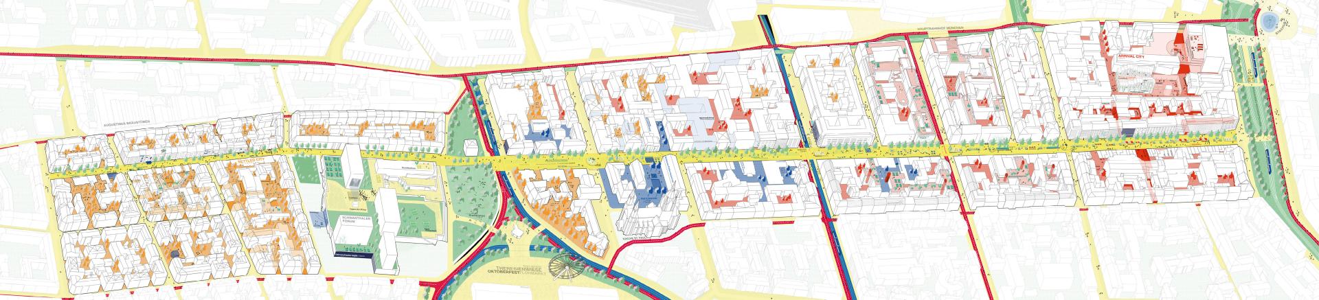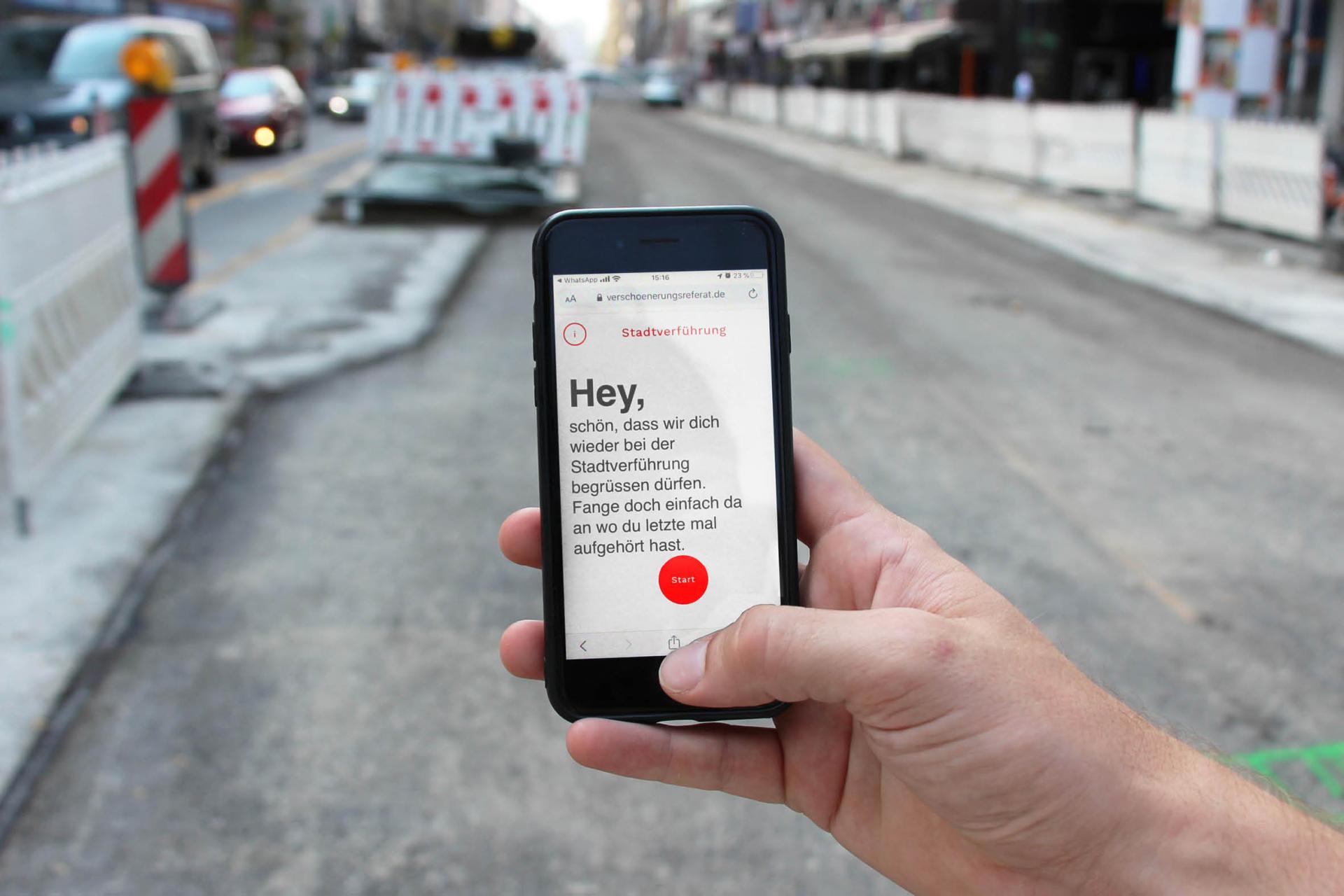 We separate ourselves from many other initiatives through the act of doing. Through different modes of financing we exceed the default idea of the planner as a service provider but understand planning as a political act. Concepts need to be executed to be viable. Compared to established actors in urban planning our mode of work allows us to quickly implement new solutions. We understand innovation as the creation of real and contextual changes that disrupt the status quo located between vision and reality. For this reason, city should be designed on the streets and not only in offices of administrations or investors. In our opinion, the city can be shaped and is subject to constant transformation. Plans and pictures are not enough to actively change the city in a positive way. That is why we also think in terms of the social and economic structures that lie behind the projects promoting change, making us both an initiative and project in itself – giving potential changemakers access to our knowledge through talks and further publications. Our approach to urban design understands planning not as the production of a finite state but as a continuous process, which is why every intervention in the urban space should achieve as much output as possible with as little input as necessary. We understand space as a multi-layered stack of analog and digital spaces, merging together. An example of this is the so-called "Stadtverführung", a digital asynchronous soundwalk that leads through Schwanthalerstraße and adjacent neighbourhoods opening up possible future scenarios to the listeners. This somewhat different city tour promotes innovative thinking through the claim, that change has already happened, making it a self-fulfilling prophecy.