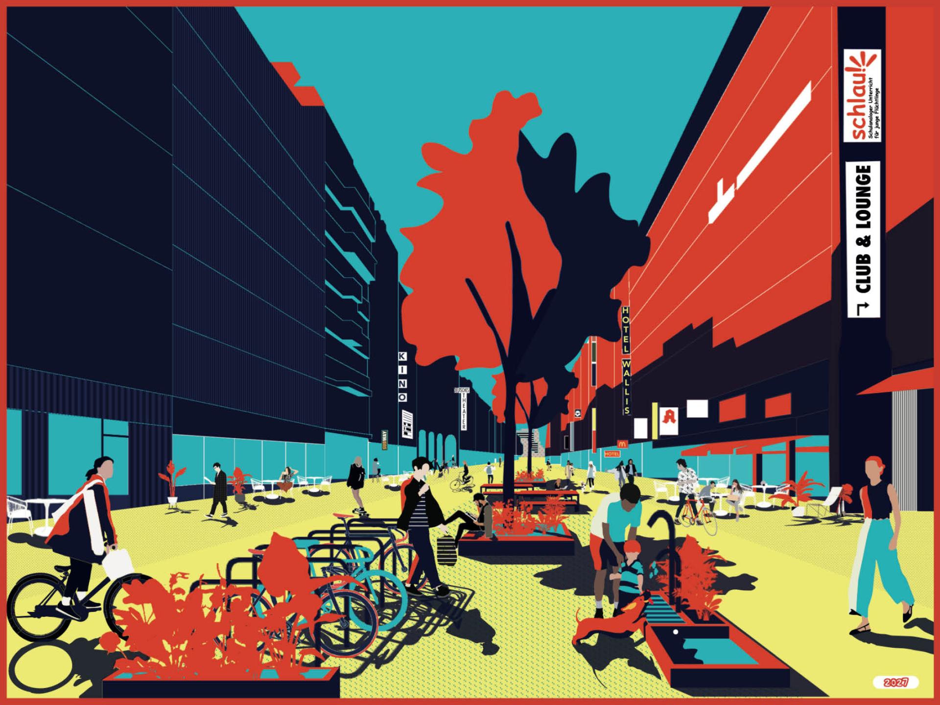 We understand sustainability as measures to examine whether our work contributes to both a socially inclusive and ecologically resilient city. The biggest problems cities are facing today are stemming from climate change and social injustice, therefore city-planning needs to address these topics in a sustainable way to ensure that cities are not only places people need to but people want to live. In the end adjustments need to be made to the surroundings of our everyday, which is in most cases the city. To make Europeans favorite place to live, the city, more biodiverse and climate-neutral, we are engaging in public space and in particular street spaces, because these are still optimized for combusting rather than compensating the pressing problems of cities. Today, street spaces are dominated by motorized individual traffic and sealed surfaces. There is still untapped potential in terms of both climate protection and adaptation. We are thus mainly led by the following questions: How must the space be designed to provide space for future-proof forms of mobility but also reduce traffic in favor of other uses of public space? How do we accelerate the necessary adaptation of our cities to climate change by improved green and blue infrastructure? And how can these questions be answered without consuming large amounts of resources for large scale urban redevelopment? We are convinced that thoughtful and sensitive interventions are necessary in the intermediate between testing and permanence. Therefore our simulations come in place. By intuitively grasping and feeling the interventions, they can be evaluated just-in-time, improved for structural permanence and achieving thus the goal of creating a large effect with fewer resources. This way of working corresponds to our understanding of the city, which we see as constantly inconstant and unfinished.