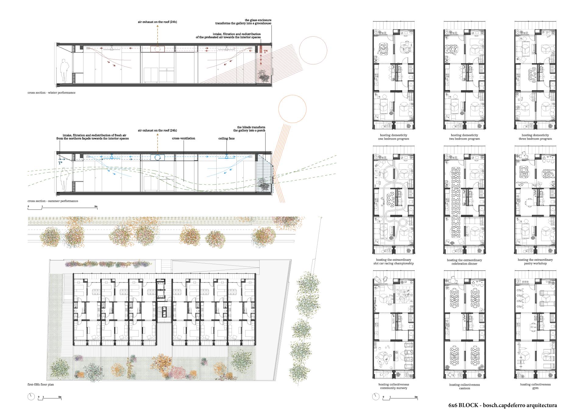 The 6x6 Block project focusses on the capacity of our constructions to configure atmospheres arisen from the moulding of the climate as an alternative to those that defy it, and leads us to imagine the housing of the present as a superstructure, a physical and climatic support, an open ecosystem ready to host both the already known ways of life and their still unsuspected variations.