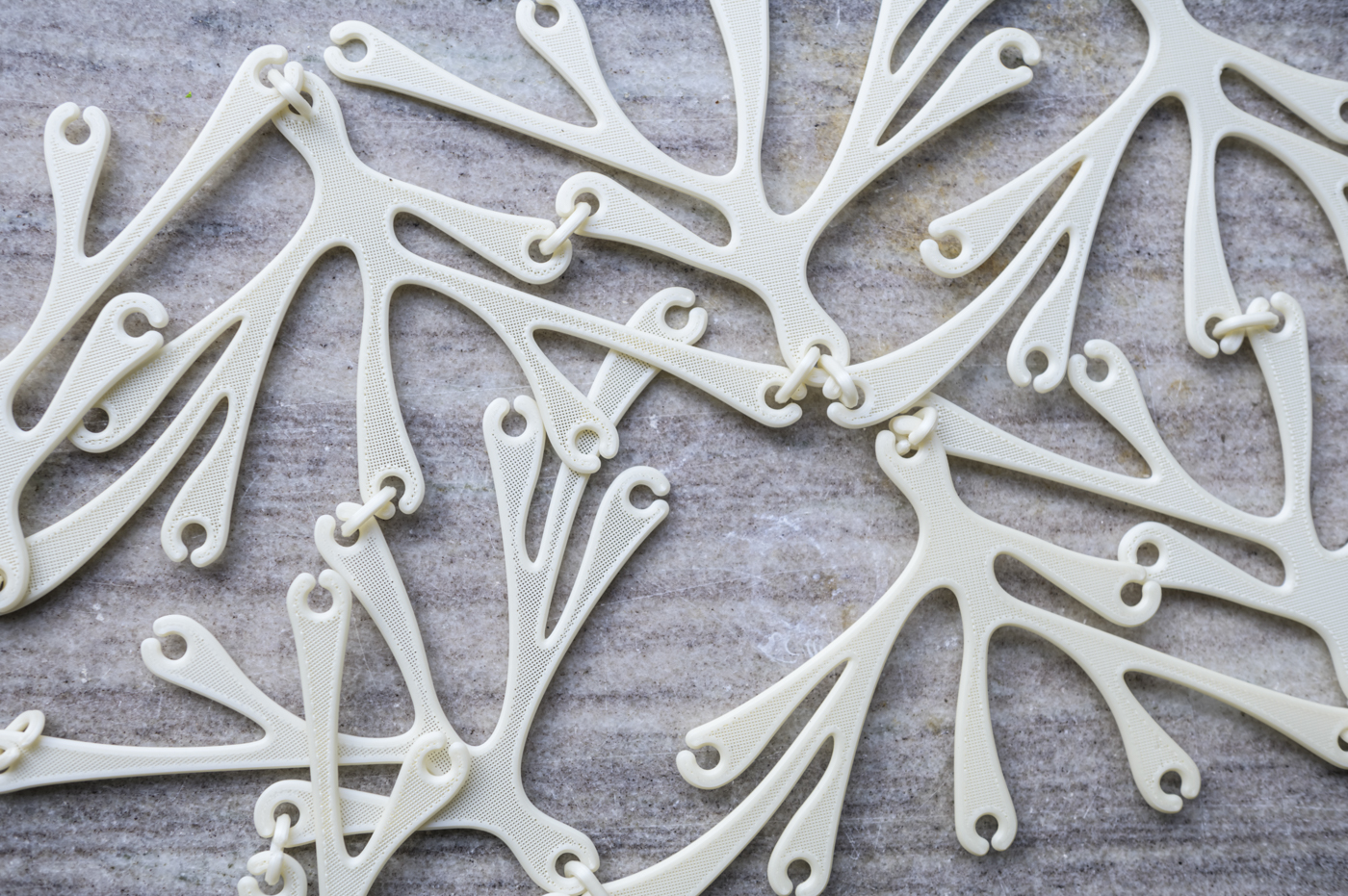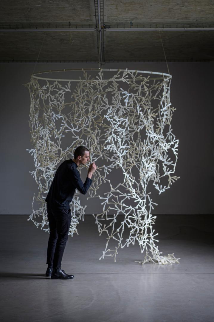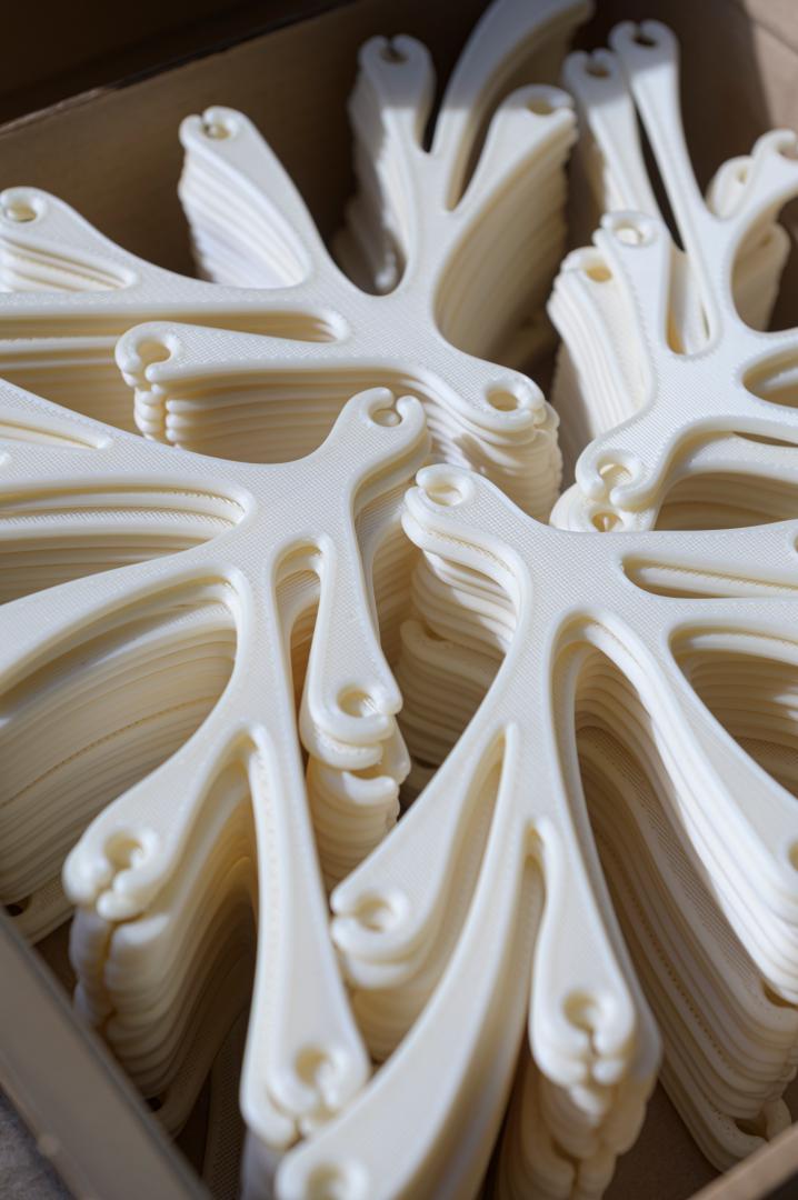 crafting plastics! studio & Office MMK started their research on the scent of the biobased bioplastics to create new aesthetics and opportunities for designing architecture and objects in 2018. The project Breathe IN / Breathe OUT investigates the emotional connection to different scents as a conscious response to circular economy and next step towards fully circular design. The first part of the research was exhibited during Milan Design Week 2019 (Alcova Milan) in the form of 3D printed bioplastic installation (pavilion) and 3D printed diffusers - objects infused by various scents. Since then there has been further development proceeding on the scents development for PHA/PLA type blends of bioplastic (by NUATAN) and the prototype of the first product - modular wall divider has been produced. The first material blends we are using are completely biobased and based on PHA - (metabolised by microorganisms from sugar) / PLA - (made from corn starch) as main ingredients.The sense of smell is used to help the consumer to identify the raw material of bioplastics and to convey the material lifecycle with a unqiue smell. The developed fragances are an additional identifier of the material origin. The developed proof-of-concept product is a modular room divider, f.e. for temporary offices or interiors in general. In 2021 the project aims to created a functional aroma formula and scented bioplastic product prototype. The project is currently exhibited at MAK, Vienna, as part of the CLIMATE CARE Vienna Biennal for Change 2021